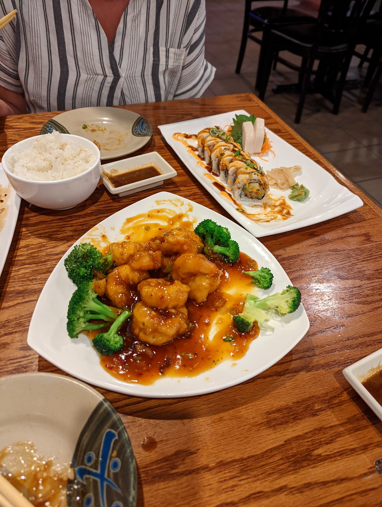 Read moreWe're from Toronto, and we're big into sushi and Chinese food. And there's tons of these restaurants where we're from. Being in Topsail, far from an ethnic population, we didn't have high expectations but thought what the heck we'll try it. BLOWN AWAY. If this place was in my neighborhood back home, I'd order from here all the time. We had the yellowtail jalapeno appetizer, which had some generously sized pieces of hamachi on a bed of cucumber matchsticks, thickened tataki (?) sauce, topped with jalapeno slices and a dot of hot sauce. This is a signature dish, I've never seen it done this way before, and it hit all the notes. Godzilla roll: on the higher end of the rolls in terms of price, but had all the good stuff, softshell crab inside, torched white tuna on top. The torched flavor was perfectly executed and elevated the roll. General Tso's shrimp: every new Chinese restaurant I go to I judge by the General Tso's chicken, it's a guilty pleasure of mine. I saw a shrimp version so why not. Shrimps were big, plump, perfectly cooked, light fluffy breading which soaked up an addictive sauce surrounded by broccoli florets also perfectly steamed tender crisp. You might want to get two bowls of steamed rice if you're into that sauce. We also got an order of white tuna sashimi because that's one of our faves. Some of the freshest pieces I've had. And this was a Monday night. What a nice surprise...