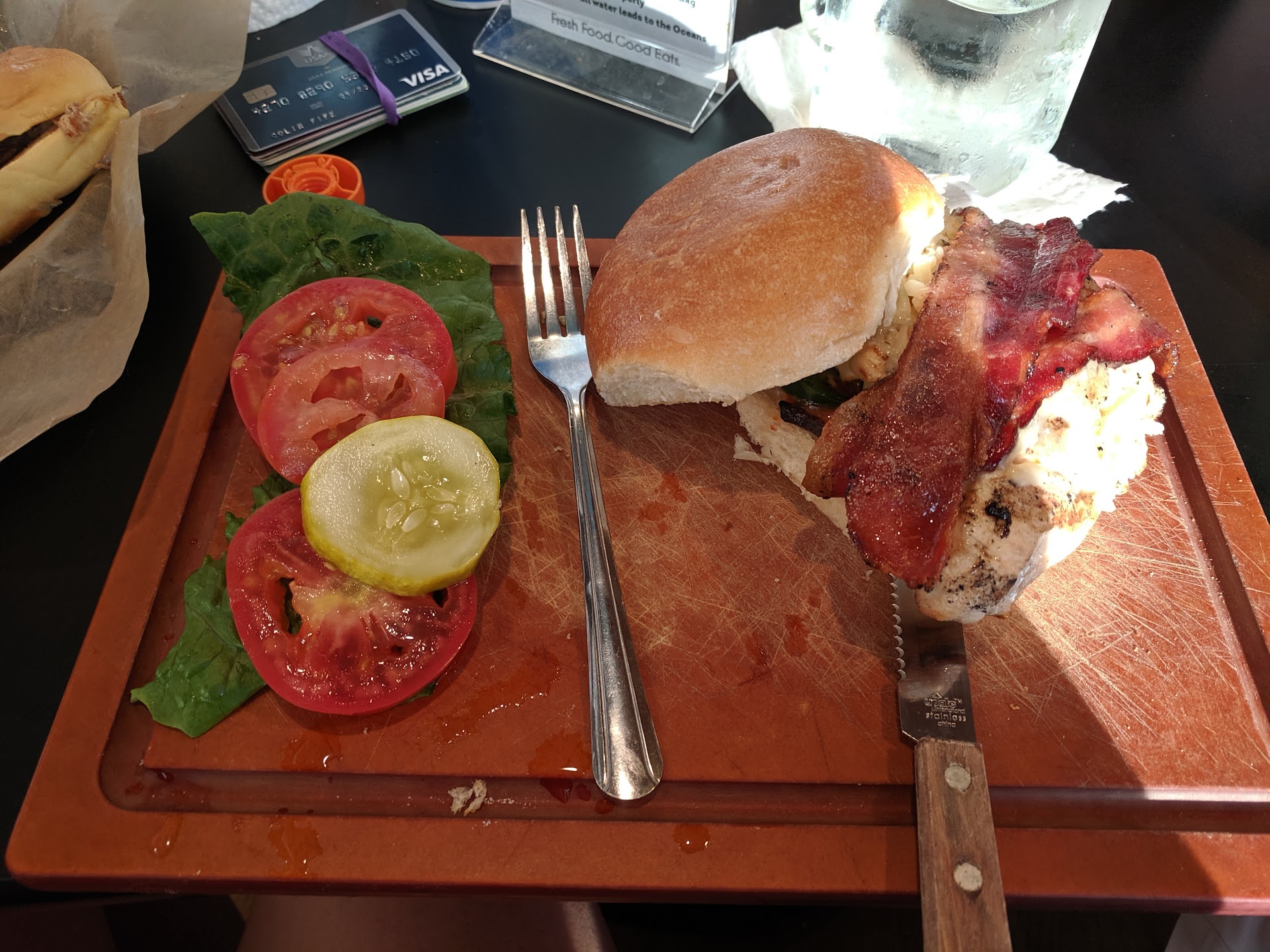 Read moreSo I read most of the reviews for this restaurant and it had mostly good reviews so I decided to take my family to the one in Manahawkin only to find a disappointment,I'll start by saying I went to the rest room and found it dirty looking toilet seat very loose,sink continuously running and no TP on the holder I didn't need it but also not my job.Next my wife had to use the bathroom and she noticed no way to dry hands after washing her hands,she was also bothered that men and women share one bathroom and she thought what happens when this place gets busy I guess a line for bathroom,also no changing table for the little ones. Now for the food a lot of people rave about it not sure what the hype is was not impressed by far I also feel over priced as most places you order a burger you get fries with it,and about the sides that you have to pay additionally for with your meal the waitress said that the sides are big helpings that most people put them in the middle of the table for everyone well a big disappointment I ordered onion rings my wife fries and I had about 7 rings not really enough for everyone to share we ate our own sides helpings not that impressive. Also someone mentioned about the dirty ceiling tiles that owner replied were replaced are still stained and dirt on ceiling by the vents over where people eat not so pleasant either long story short a...