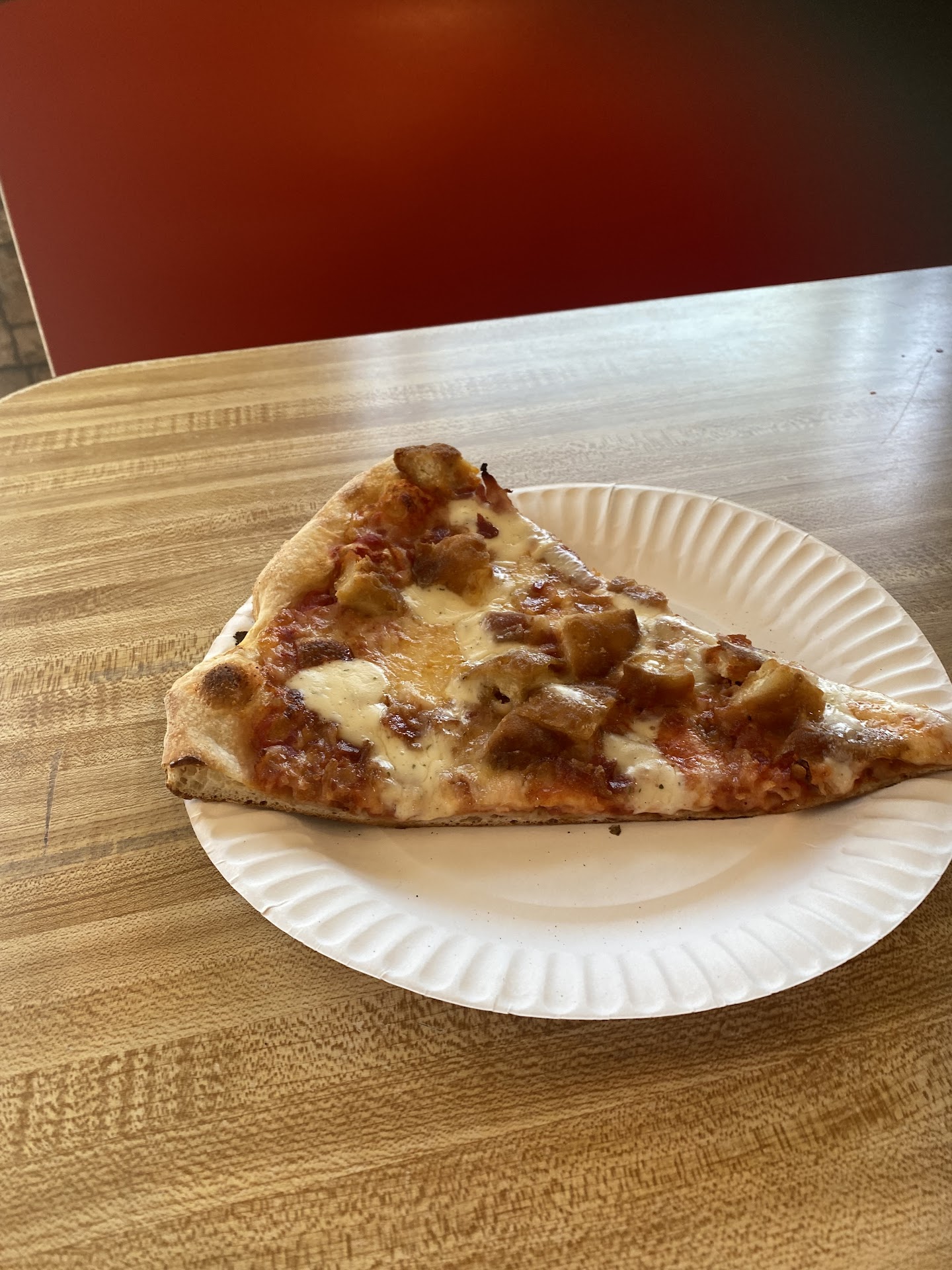 Read morePizza: great crust, generous toppings, sauce and toppings were a little bland. I only had the special slice so I can’t speak to more than that though as far as flavor goes. The chicken and bacon on top didn’t give off much flavor besides salt. Atmosphere: classic jersey pizzeria with sparse decor, pizza display counter and those same pizzeria booths everyone has. Service. Fast and friendly and probably the best part of the experience. Definitely what made me choose 4 stars instead of 3 when I was inbetween. Convenience: good location with easy street parking and access and nice that it’s...