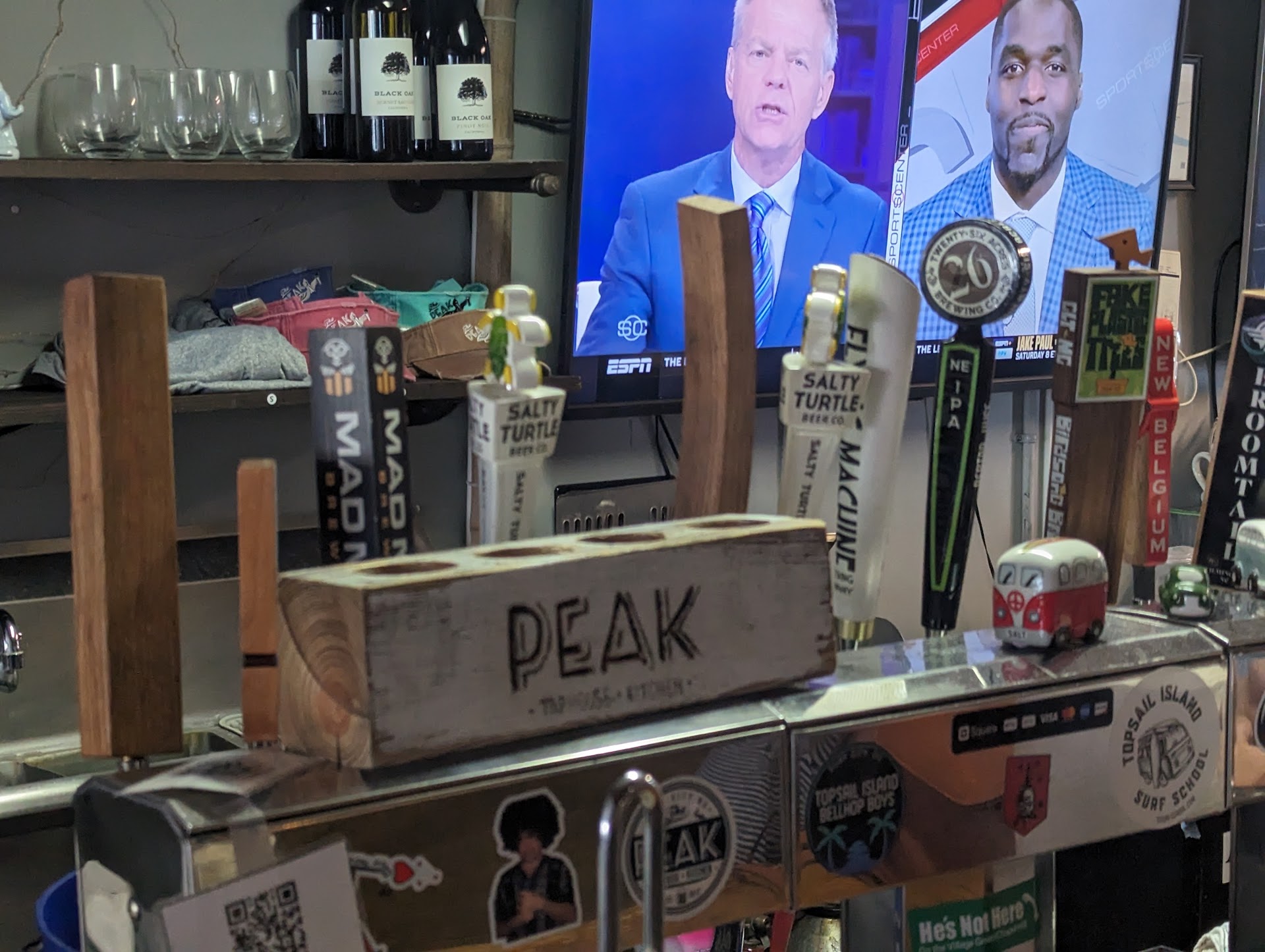 Read moreWe had lunch at the Peak Taphouse and Kitchen based on the good reviews. However, we cannot recommend this establishment, based on our experience. They offer 8 to 10 standard pizza selections, which you can add ingredients to. The pizzas are approximately 10 inch. I ordered the pesto cheese pizza, and my wife ordered the vegetarian pizza along with pepperoni. I ordered a craft brewery draft beer. The beer was $7.50 for a glass, and the taste was so unpleasant that I asked the bartender to pour the beer out. We then ordered a bottled beer, Samuel Smith organic chocolate, which was $6.50. The bartender never offered any discount or any type of exchange for the beer which was not drinkable. By way of comparison, another day, we ate lunch at Daddy Mac's Beach Grill, just down the street. Craft brewery bottled beer is $4.50 for any of the 15 or so craft beers they offer. So Peak Taphouse is way over priced for their craft beer. Then our pizzas came, and they were both burned on most of the bottom crust. We were able to only eat some of the pizzas. Once we had finished eating, the cook came over and saw the burned crust, and did offer to make us replacement pizzas, which was a nice gesture. We would not have been able to eat two whole pizzas, so we thanked her and declined her offer. There are other much better choices for places to have food and a beer than...