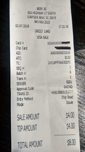 I'm visiting from Ohio with my wife and two of her siblings. My Bro-in law and I wanted to go to a local bar, to soak up some of the local atmosphere. My Bro-in law had wanted to check out another local bar with dead and dog in the title but we found out from a "local" that it was actually a restaurant, even though the title said "saloon". After perusing the "coupon book" for ideas and strking out, we took to the internet. Ole Google came through again. Beer 30 came up and after checking out the reviews and photos, we decided to give it a try. The place is in a little strip mall. All in all the buildings looked a little run down, but the atmosphere inside was great. Miranda, (l hope I'm spelling it right) the Barmaid was friendly and jovial. She greeted us with a smile and a friendly greeting. As did a costomer standing at the bar waiting for his drinks. One look around the room and I knew we had picked the right place. The age of the crowd was diversified. A couple of twenty somethings, a few mid range, and the rest older like myself. The place was decorated for Halloween, and rather well-done done too, (as the photos show). Now, I'm not much of a drinker any more. Maybe a pint of wine a couple times a month. I know most bars serve low alcohol wine in those little bottles, and from what I could see from my view of the fridge, so did they. Although, when I asked about wine, Miranda listed off a larger selection than most bars up home carry. I chose to try something else. In my youth and beyond, I was a Tequila man, so I ordered a shot of the house Tequila and a "Miro brew" chaser. Sweet Water "420" or something like that. I also haven't drank beer in years, and ordered this due to a photo from their bar review, online. Being an ex stoner from way back, I found the "420" road sign on the can cool. It was a pale ale, and took some getting use to. But, by the third shot it was tasting pretty damn good. After two shots, and half the beer, I asked Miranda about their top shelf Tequila, explaining to her that all I ever drank was either Mescal, or the cheap stuff. She told me about it, "Don Julio", but said she preferred a different, (and less expensive) brand. I tried the higher priced one, (I am on vacation after all). I gotta say, I was not impressed, and wish I would have went with Miranda's recommendation. It tasted about like all Tequilas to me, just a little less bite. For the price, I would pick the cheaper stuff. My Bro, struck up conversations with a couple of locals coming up to the bar for drinks. They were friendly, and answered some "cost of living" questions about the area. They had a couple of pool tables in the bar, from what I could see, and a few other games. I didn't notice any pinball machines, but I was there for a few drinks, not games. We didn't order food, but was told it was good, by a couple of the locals we talked to. The place was not packed, but had a decent crowd for a Wednesday afternoon, in the off season. We really enjoyed ourselves, and went all touristy, and bought t-shirts to commemorate the visit. We hope to return before our trip ends in a couple of days. BTW, I would give them a 5 star across the board, but due to OCD, I stay with even...