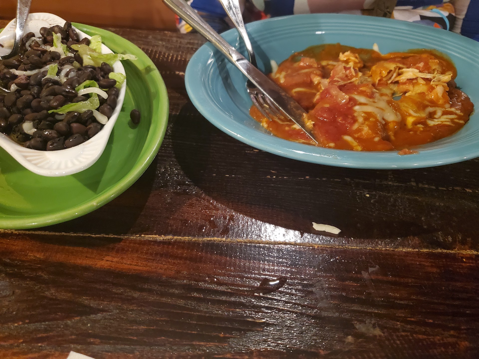 We started with the chips and queso. The queso was wonderful, a little thin but it thickened as it cooled. The flavor of the queso was spot-on and the blending of the cheeses was perfect. Many Mexican restaurants use too much American cheese and that over powers the other cheese flavors, not so in this case