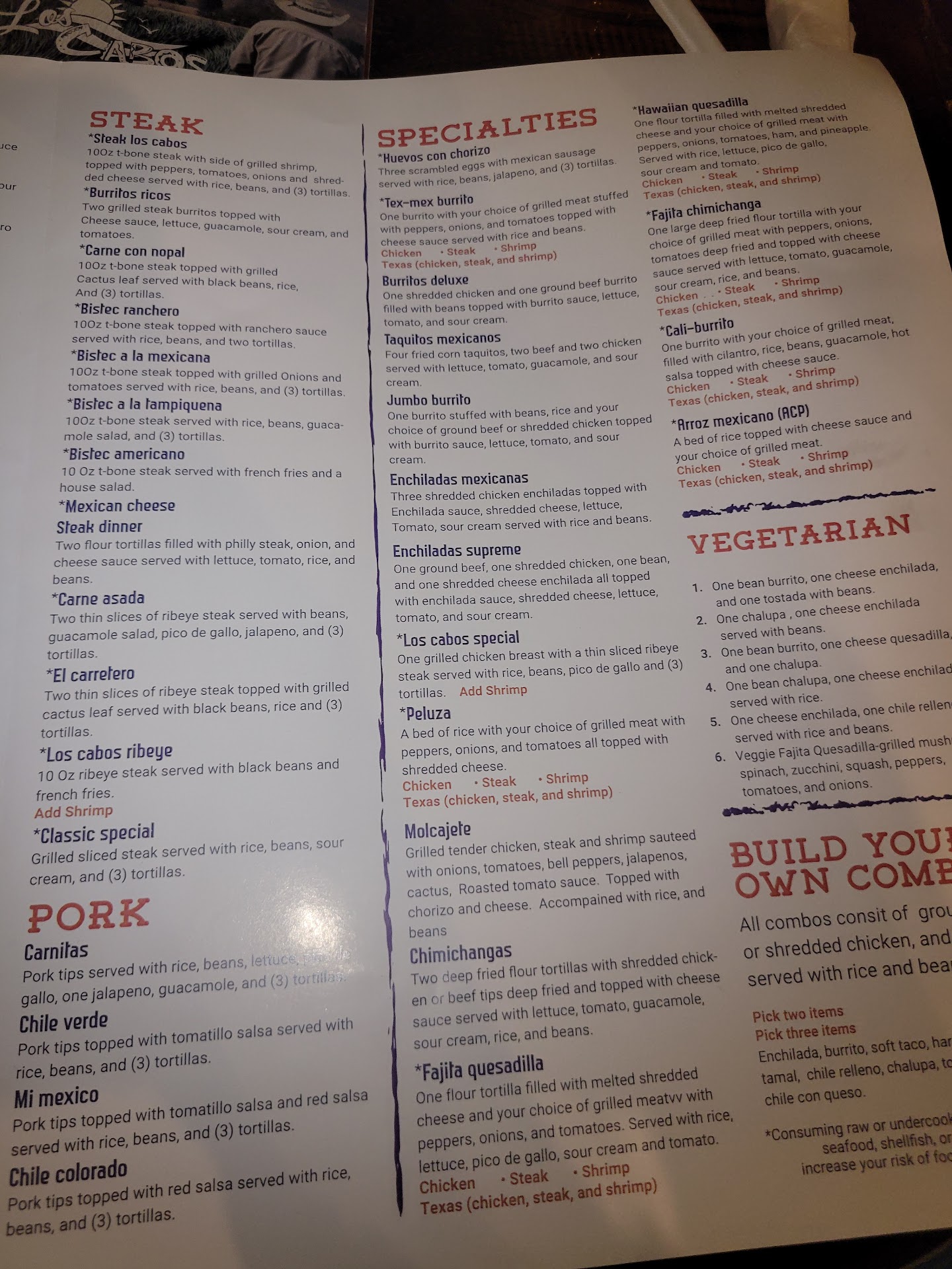 Read moreAfter many hours of being hungry and shopping my mom and I finally decided to stop and eat. After a quick Google search of best Mexican restaurants Los Cabos popped up. Upon pulling up my mom and I were not sure if they were open as there were no cars in the parking lot. The open sign was on and flashing on the building, so we decided to go in. We were warmly welcomed by the host and quickly sat down. Our waiter was nice and patient as we took a few minutes to decide what to order. Their menu has a great selection of steak, chicken, shrimp, and vegetarian items; as well as drinks. Half of their drink menu is dedicated to tequila shots.