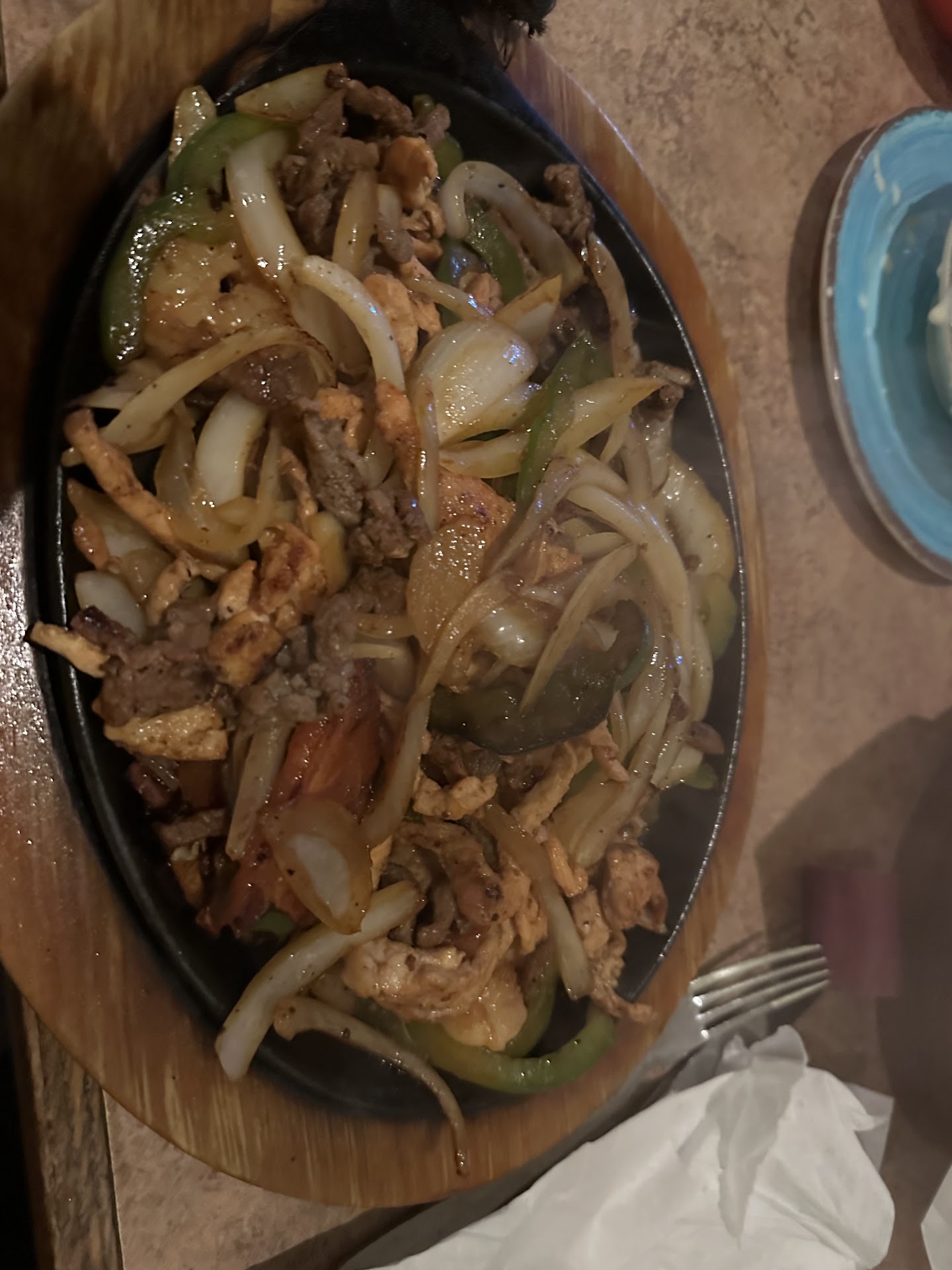 I had the Texas Fajitas which were seasoned perfectly and came out steaming hot. I immediately went to the veggies on the bottom to see if they were burnt and they were not. The fajitas were delicious and perfectly prepared.