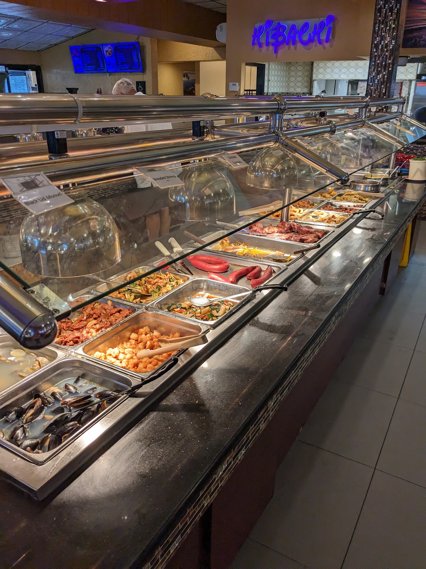 Read moreFood was okay. The finishings, flooring, and carpet reminded me of an old b movie scene where there is about to be paranormal activity. The server dropped two glasses of water then began cleaning and resetting the tables in the row we were sitting. She would come by and ask if we could hand her the empty napkin dispenser, then the condiment rack. After we were done. We asked for the bill, paid in cash. The server looked at my father and insisted that he pay the 15% gratuity. Yes! She insisted and then demanded that we pay her. Because we are normal citizens and descent people, we obliged. I was a little warm and frustrated about it. Isn't it the consumer's decision to give a tip that we suggest? She dropped off water and silverware, asked if we were okay once, then began cleaning and resetting tables. Is that work 15%?? It's a buffet. Gimme a break. I believe th as t tips are a part of your salary but the should be earned...