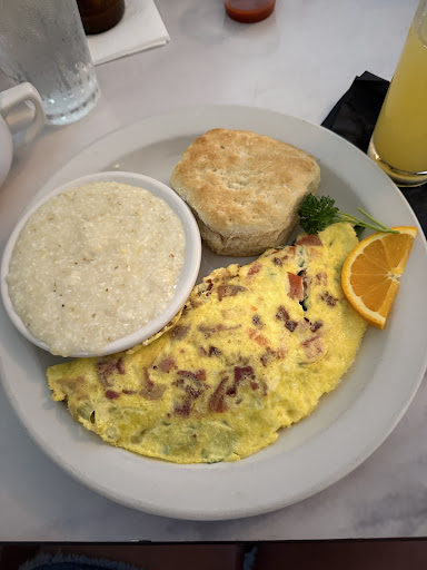 Not very professional waitstaff. We were pointed to our table and told to sit down. Waitress was in a hurry to take our drink order and then took 15 minutes to bring them to us. It’s fine, I understand it can be busy in there. But my grandmother could not get the words out that she wanted decaf coffee before the waitress took off. The food was ok we all got omelets but we ordered biscuits and we received English muffins. The waitresss never came back so we could tell her we wanted a biscuit until our meal was over and it was time for the check. We waited 40 minutes after eating for our check. After 40 minutes I went up to the front counter and kindly asked if we pay up front or at our table. The other waitress said “you’re going to have to give me a minute I’m doing something” very rudely. I understand it can be busy but It takes just one minute to be kind. We came down here for our family vacation after receiving bad news and I will never forget how that waitress spoke to me. We finally got to pay and left. I strongly do not recommend this restaurant. And to the waitress with the dirty blonde curly bun in her hair, I pray you will be nice to other customers in this restaurant and not be rude to paying customers and not treat them like they are dirt on the floor. I have never felt so degraded in a restaurant or talked to like a child...