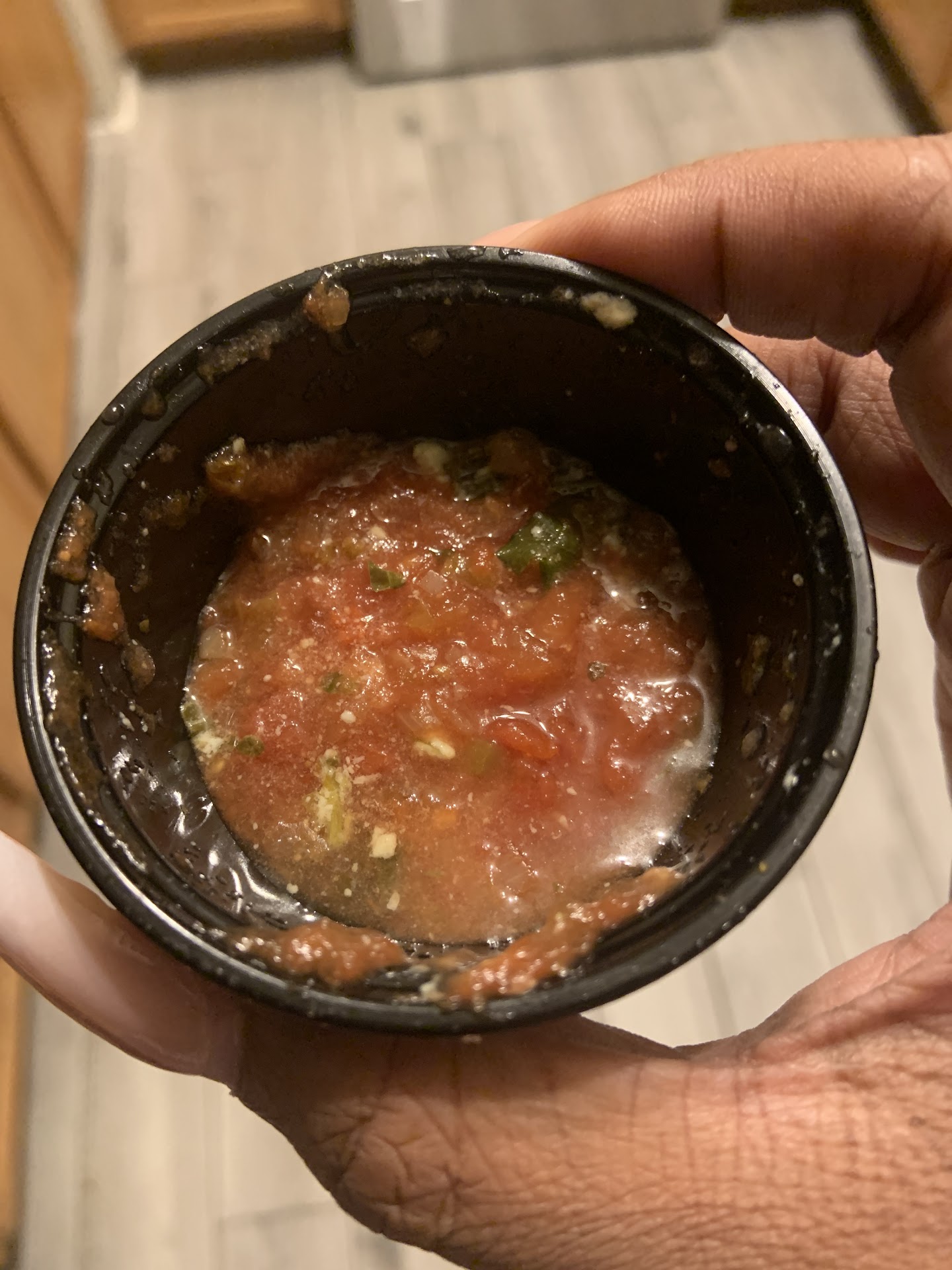 Read moreWe arrived for the dollar ritas along with the combo appetizer. The restaurant wasn’t busy at all. Our server was bartender Joseph K and he asked us for our drink order and brought back no water- no biggie. After we had our first drink, I had to flag him down to order another drink and water as he never volunteered to come to our table; we had to notify him. He comes back with our drinks and no water. We ask for water again and he arrived with the water. Keep in mind for drinks, he doesn’t ask if we want lemon nor ask if we want salt or sugar on the rim. We ordered the combo plate and it arrived with some of the mozzarella sticks exploded and the chips were so burnt (you could visually see they were burnt). We mentioned this to our server and he says he will bring us fresh chips. He brings back the burnt chips again and we tell him we clearly can see that they are burnt and we cant eat the queso nor the spinach with burnt chips. He proceeds to tell us he can takie the queso off and give us a 10 percent discount on the combo. This is only 1.89 off something we cannot even eat the restaurant. He apologizes and confirms that he knew they were burnt when he brought the new chips over. He then avoids us like the red plague until we have to ask him to speak to someone due to the service and food received. While we are talking to our server another server Derek walks up to the table to tap our server on the shoulder and ask for w key card. We do not feel valued nor cared about at this point. The cook from the back- Patrick i believe- walks up and can immediately see the chips are messed up along with the mozzarella sticks and says he will remake them. Brings us the food in a to go bag. We arrive home and the food clearly looks like someone was eating and you can twll as the salsa had spinach dip pieces in it and the spinach dip looked half full. I used go be a server at applebees and often go- I will NEVER go to this location again and ai urge others to not either. Please also keep in mind, they were still passing out those burnt chips to other patrons as well and you can see people react but didnt say anything. Save your money (I included a photo showing the spinach dip in the salsa...