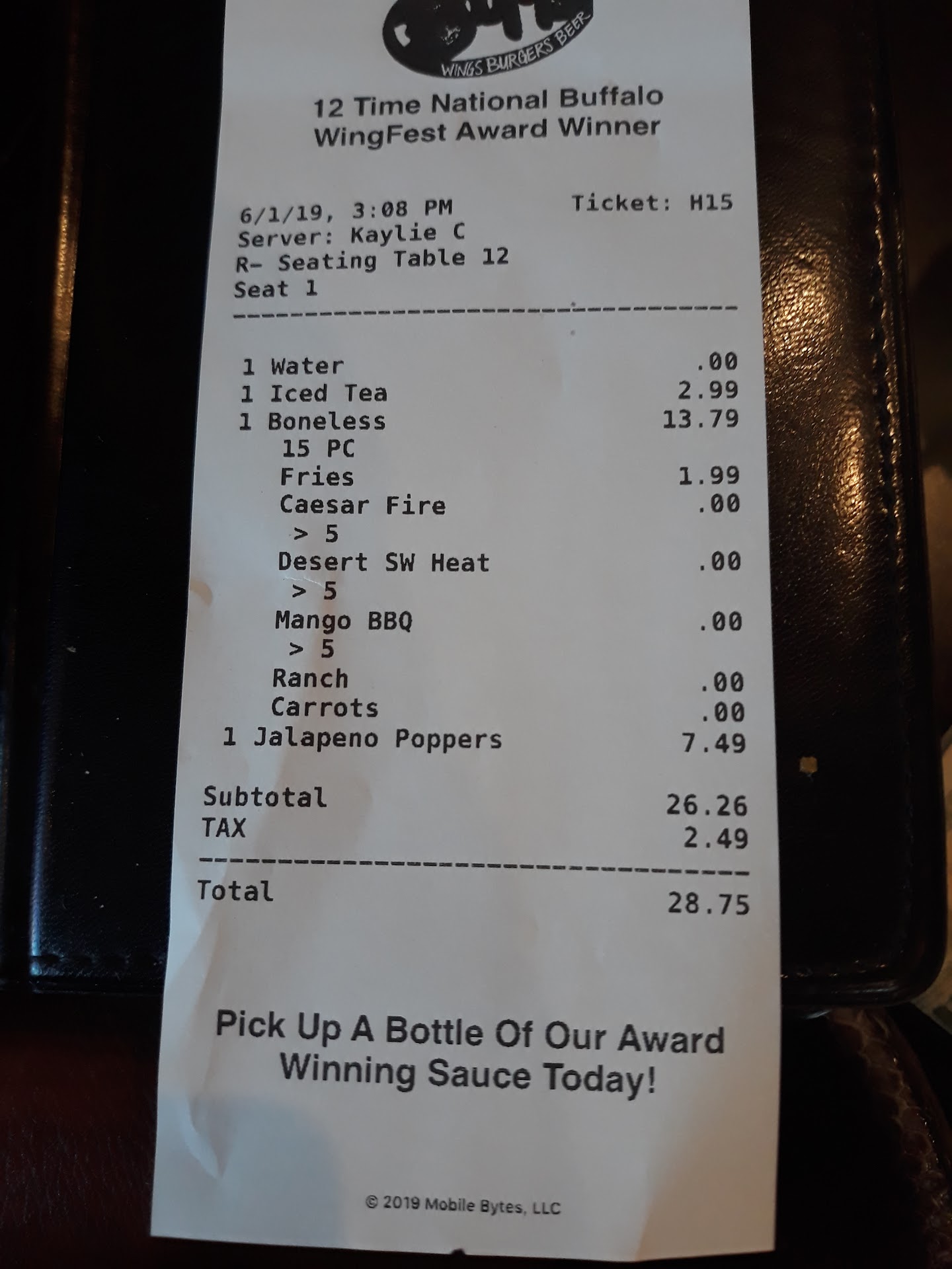 August 2019: ABSOLUTELY GREAT! Some of the best wings in town and the jalapeno peppers are awesome too (wrapped in bacon come on!). Prices were some of the best I've seen in awhile. Red/Kaylie was our waitress and the girl was on point. Very attentive to all tables she was serving, and was able to answer a variety of questions regarding their menu and items. Food was prepared in a timely manner, however quality was of the upmost where wings are concerned. Also for sports fans... there is a lot going on here. Calendars can be found on the wall for upcoming sporting events being shown. We'll definitely be going back. Thanks Booty's for...