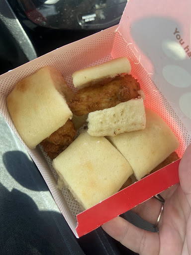 All the chicken we got was really dry. We couldn't even finish the nuggets from how overcooked they were. Our large fries were not even filled up halfway and none of them were crispy at all. We were surprised they were even cooked they were so flimsy and soggy... Then the pickles on our sandwiches were a joke, they looked like the end pieces of the pickles, and not even full slices.. so the size of the pickles together barely added up to one pickle slice...