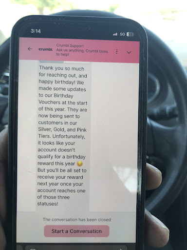 Read moreI ordered some cookies via the app and never ended up getting them due to getting sick that day. My card had been charged anyway the next day. I called the store to get my money back and some woman answered and just sounded put out. I explained what happened and her response was “Well, you can still pick them up anytime”. That really wasn’t the response I was looking for. A simple “No problem, I will refund your card” would have been just fine. She then said I could have cancelled the order myself via the app. I explained I didn’t need or want the cookies anymore at this point anyway and her answer was that it would take “five to seven days” to get refunded. I don’t know, it just seemed like she was trying anything she could to deter me on getting a refund and to have me initiate my own refund myself. Just lazy customer service support with a bad attitude. She finally asked for the last four of my debit and said she refunded me, which is all she had to do in the first place instead of the runaround. Others have complained about trash customer service too so I see it isn’t only me. After a full seven days, my card still had not been refunded and I had to do a chargeback with my bank. I also lost my rewards on the transaction because I was redeeming a free three-count mini. The points were never put back on the account even though the transaction was cancelled. Won’t be ordering anything from this...