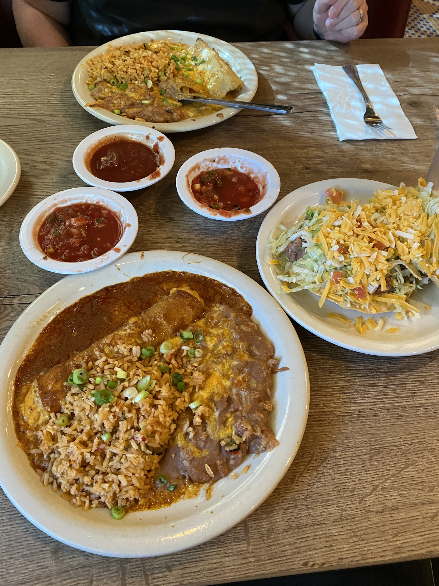 Read moreWe were looking for a new Mexican restaurant to try while celebrating my nieces recent high school graduation. Id never noticed this place before and had been in this same parking lot in the past at a few other food spots. I was please when we arrived to be greeted right away and that they had an available table for the five of us. Our server was friendly, took our drink order and left us to review the menu. We quickly ordered the spinach queso as well as the bean dip off their appetizer menu. I'm glad we also had the chips and salsa because the appetizers both came with flour chips which are horrible in my opinion. So we used the tortilla chips instead. I do wish the salsa was a bit spicier than salty. Both dips were delicious, but i really enjoyed the jalapeno cream cheese mixture in the bean dip. We ordered many different items for our main course from shredded beef tacos, carne asada taco plate, enchiladas etc. I loved, loved, loved the flavor of the green sauce on my chicken enchilada. My beef taco was a bit dry, but toppings etc were great. The bean tostada that came with the meal as well was tasty and beans had good flavor. The portions were good size and we did have to take some leftovers home. Pricing was amazing honestly. I cant remember the last time we ate anywhere with meals this large for under fifteen bucks. The place is a pretty good size, was clean and lighting good. It tends to be so dark in Mexican restaurants, All in all this was good spot and Id come again to try some...