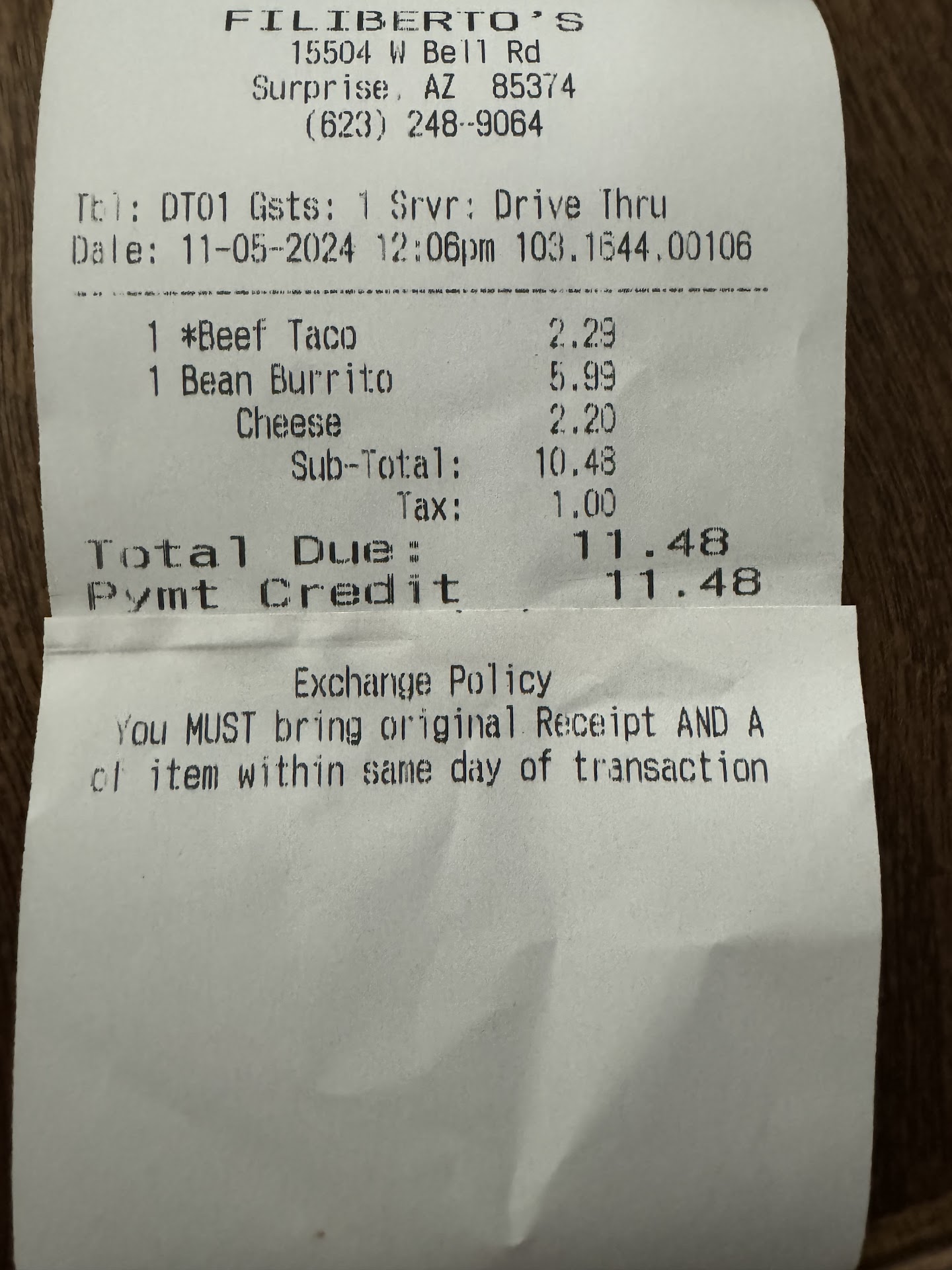 Came to this Filiberto’s around 12 PM ordered food for $64 and was absolutely disgusted with the quality and taste of my entire order except for my patron burrito. I ordered 2 Carne Asada tacos two Pastor tacos two cavaza tacos , Super nachos, Patron burrito , Menudo, which had no harmony or the actual stomach it only was red soupy water that was cold. I called All night and no one would pick up a total of nine phone calls were made another five phone calls were made the following day just to speak to a manager since I had the food sitting out on the table with my receipt inside. I was willing to drive back if somebody would’ve answered and said, bring your receipt along with the food back for a full refund. I was not going to drive 32 minutes for no reason. I had ordered a soup, the soup leaked all over my receipt and because the food started to smell I tossed it out. I came to the store the following day again in person showed the wonderful gentleman My bank transaction along with all the phone calls I had made to the store. The gentleman reached out to Erika the manger . she said, due to not having the food along with the receipt back to the store she was not able to refund my transaction. After showing all the proof I had, including my bank statement and my phone calls. I was very disappointed in the way Erica handled this situation. I will be reaching out to their corporate number that I received from the store and also reaching out to my bank. Very unfortunate that a manager could not simply pull up my Receipt in their system, which she was more than capable of doing but refused to. I also drove 32 minutes back to the store to explain myself since I was not able to speak to a live person on their phone. Don’t waste your money nor your time eating here. I do need to add that kind gentleman. His name starts with a K did offer His apologies and did believe everything I was saying, but unfortunately, he could not do anything since his manager...