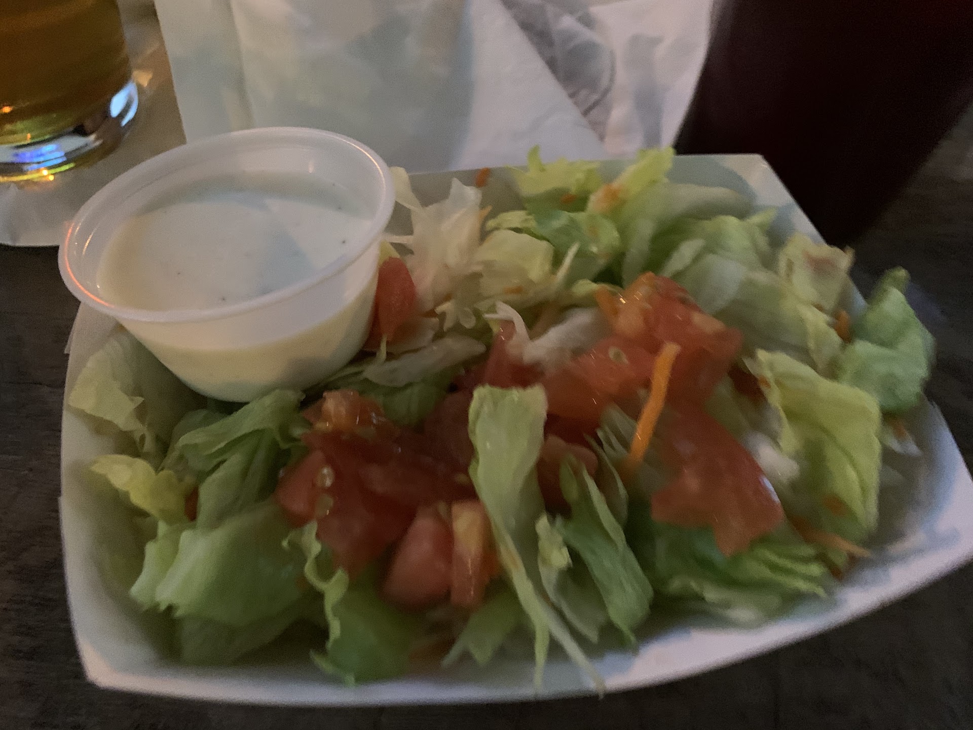My wife is telling me (she always tells me to tell things tellingly differently) that I don't to turn people away from this place because it really was such a nice little hole in the ummm.... place with nice big screens, good fewd - she just told me again that I need to say the salad could fill a wheel barrow... that's good I say... if you like are a rabbutt or a shrimphog. My wife just told me to clarify that whut she meant was that the salad was bug I mean big..