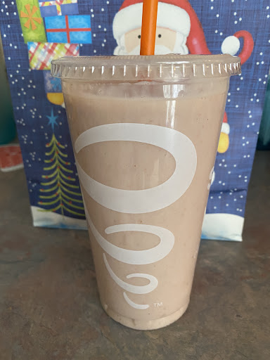 So like, we came in... the sun was in my eyes. And the eyes were in the sun. Maybe some shading on the windows would help my eyeballs from boiling. Anyway, we were welcomed like we were related to the janitor or maybe the manager. They were nice and we ordered some dueces. They asked if we wanted boosters and we was like "say what?" We just shook our ears different directions hoping they would understand. We paid over ten dollars for two drinks. Then we waited with my eyeballs boiling out of their own juices. As we waited the music was blaring pagan lyrics into my beautiful cranium. My daughter's heads was getting warm. The music was very loud like in the zoo. We waited for 8 minutes for two juices and it wasn't that crowded... actually there was only like one other person there. The little cute blonde girl who took our order eye's started twinkling and we knew it would be soon. But our eyes continued to boil and pop. Please buy a sun shade for the windows. My skin began to crackle when we heard our name called and some frozen mists were floating off our two drinks waiting for us. We tasted them. and was like... Yummm... kind of bland but pretty cold and nice and not to mention juice filled wonders. We went outside to partake because our brains were swollen and our skulls began to liquify from the music inside which would have been cool if it were like.. celtic or irish stuff or even polkas from another dimension. But it was like pop music and since our eyes, ears, skulls and all upper torso was liquifying and baking, and crackling, and popping we decided to eat outside in the fresh smells of oily asphalt and exhaust from Hell rd. I meant Bell Rd. They were good but not 11 dolla good and 8 minutes of paganized music good. If you know what I mean. Pretty...