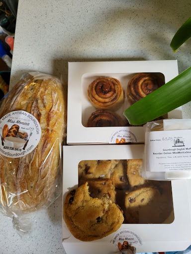 I'm speechless, but let me first express how Monica is one of the kindest, sweetest and most gentle human beings I've ever met. These traits are infused into the goods she bakes. Her communication is top tier. As far as what we've tried so far, the brown butter chocolate chip cookies are divine. We also picked up two plain sourdough loaves. We've had plenty of homemade sourdough breads but I must say, these are in a league of their own. We know exactly where to go now to get our fresh sourdough bread and other goodies. We cannot wait to try...