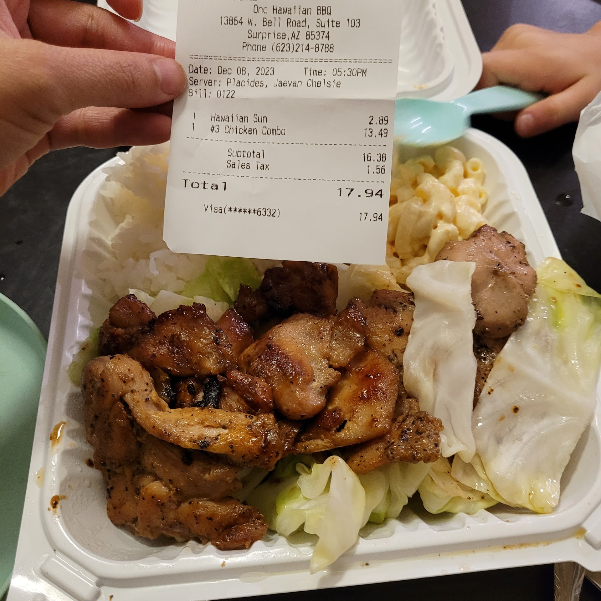 Read moreI love this place. Perfect plate lunch and food is amazing. The customer service is even better. Im late writing this review but about 3 or 4 weeks ago I went in with my brand new 2 week old baby to pick up food for my family. I would usually call ahead but I didnt this time because my boyfriend had a request that I wasn't sure i would be able to convey over the phone properly so i waited to order until i got there. Alyssa took my order. She was super friendly. Then I sat with my newborn and waited for my order to be ready. When my food was ready, Alyssa brought it over to me and asked me where i parked and told me she would carry my food out to my car for me. She didnt even give me the option and she opened the door for me and carried my food to my car. On the way to the car she informed me that I could always use the drive thru but since I ordered the island fire chicken it couldnt be ordered in the drive thru but that I could always call ahead so I dont have to wait as long with my baby. When we got to my car she asked me where I wanted the food and even put it in my car for me while I put my baby in the car and then she thanked me for coming in. She has amazing customer service and everyone could learn from her, though all of your employees have been friendly. But she definitely tops any customer service I have seen...
