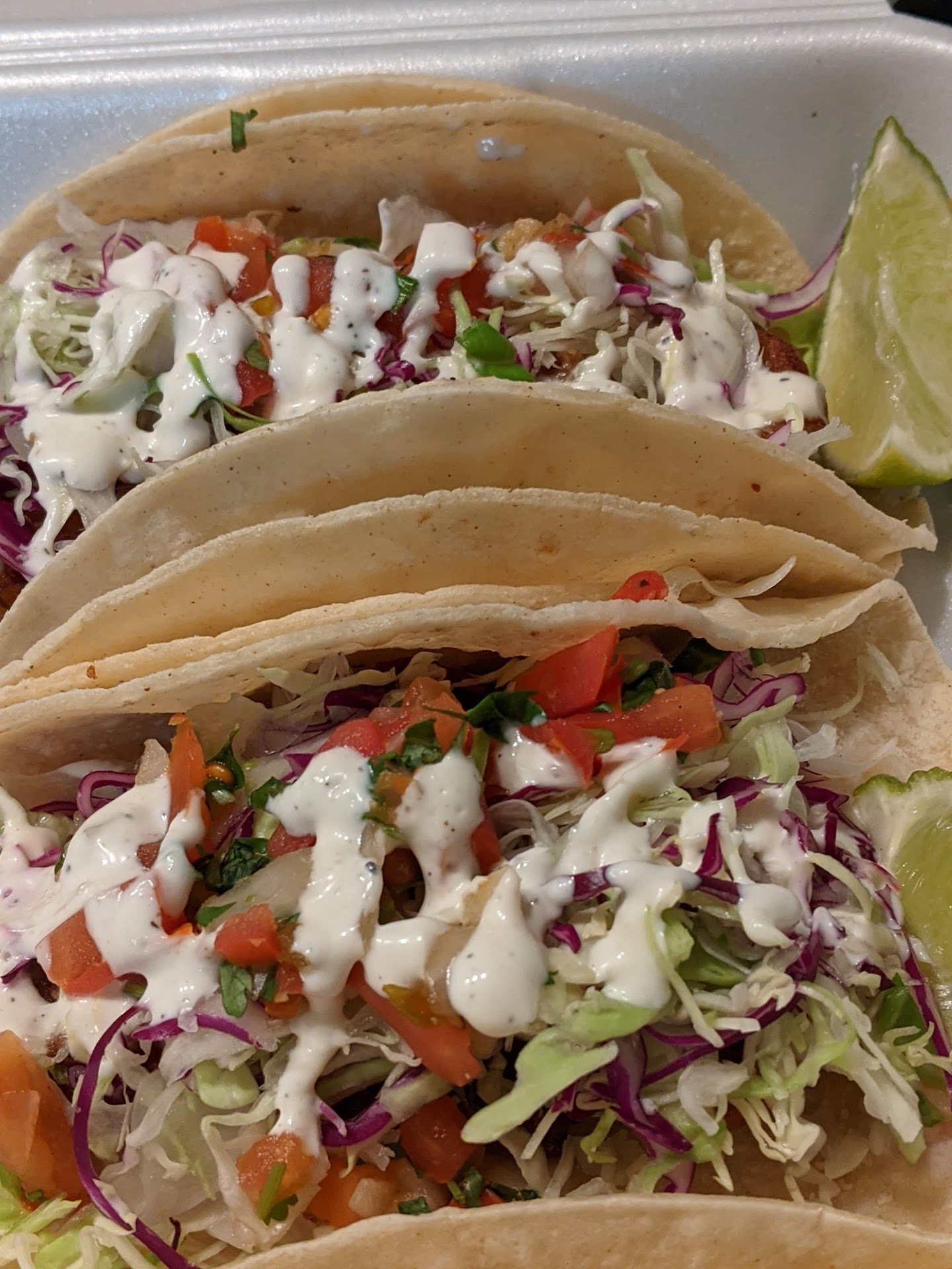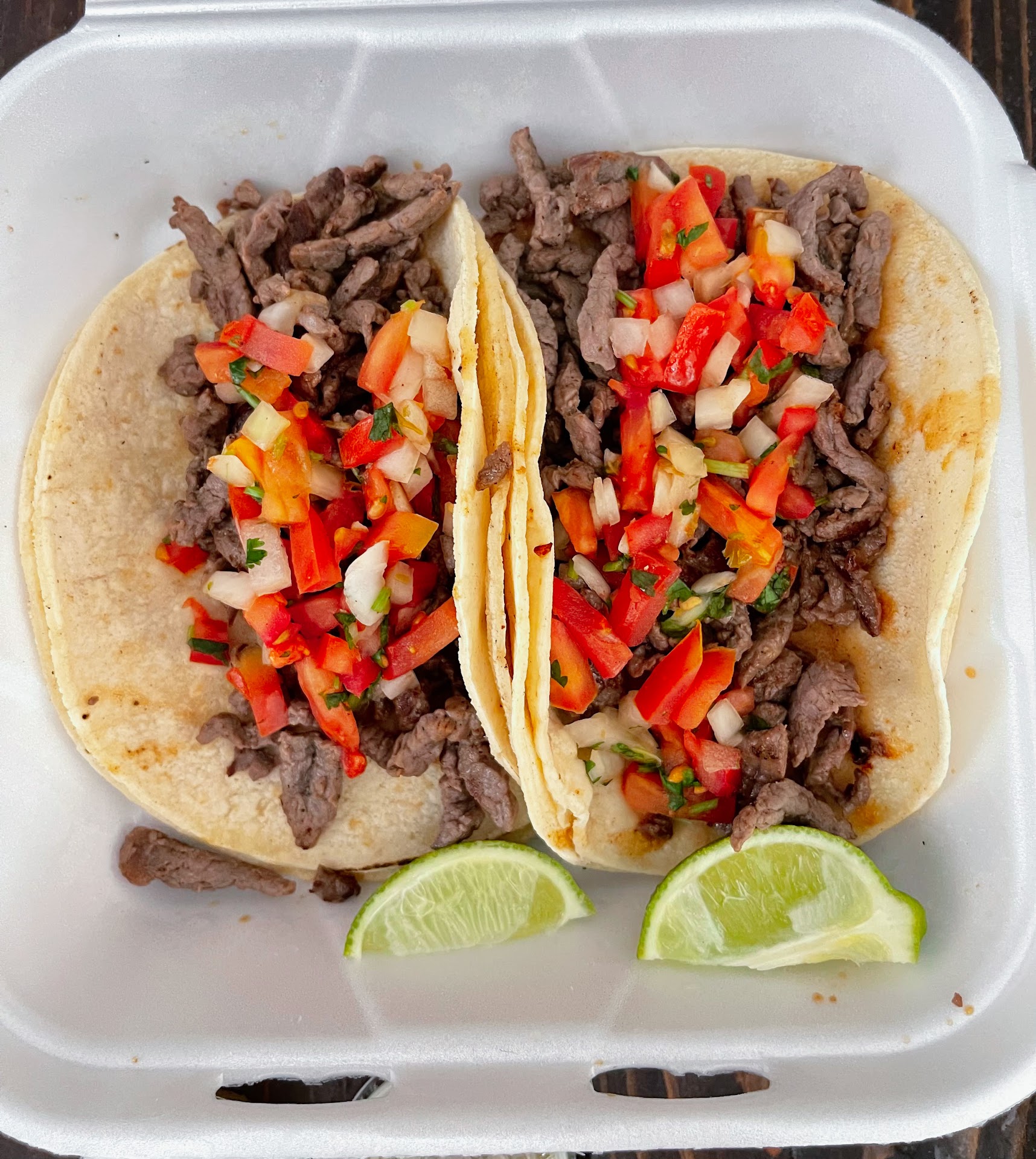 We ordered 2 carne street tacos, carne fries, chicken taco, and beef taco. The street tacos are FAR larger than typical street tacos, and the regular tacos were large as well— both VERY generous in portion sizes inside of them, and SUPER tasty. The carne fries were excellent too; the cheese was nice and melted, a good deal of sour cream, and the meat again, very tasty. The only thing I’d change is I wish the fries were a little crispier, which they very well may have been and lost that due to the condensation in the box on the way home, but either way, I’d order them again!