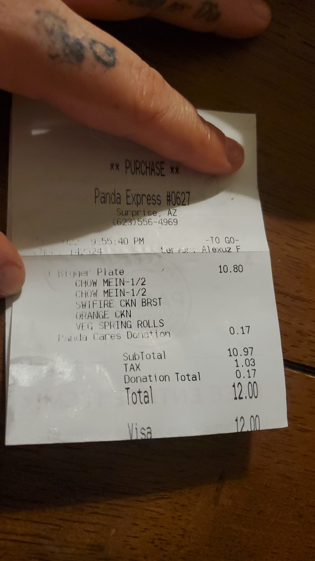 Let me tell you about the kind of day where every muscle in your body aches, your uniformâs caked in drywall, and all youâre dreaming about is some hot food and a few quiet minutes of peace. That was me today. After a full bathroom remodelâdusty, tired, and honestly not smelling my bestâI pulled into the Panda Express on Grand ave just hoping for a quick bite before diving into my studies.