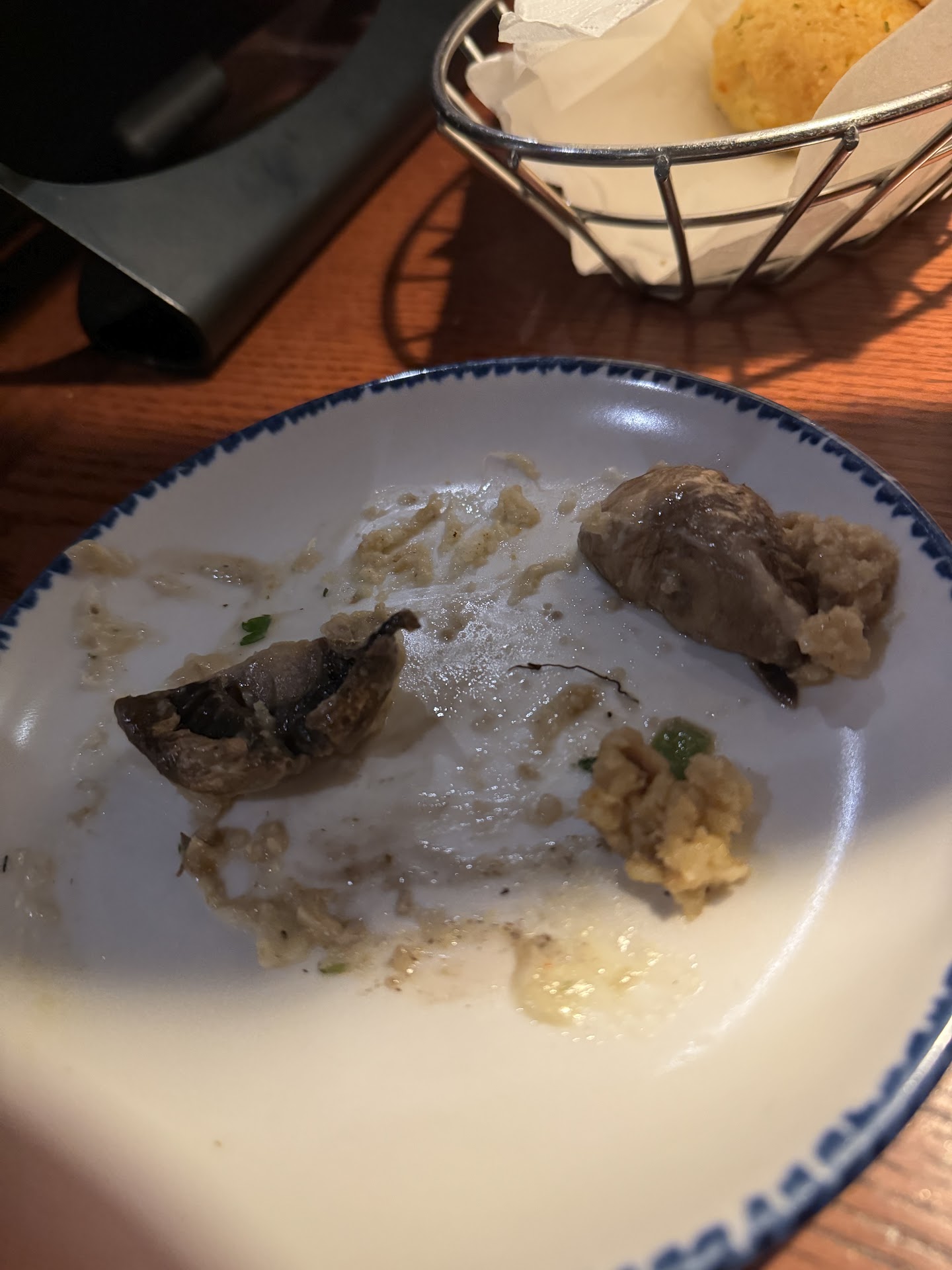Read moreMy fiancĂ© and I just had the worst experience weâve ever had in a restaurant, hands down! To start, when we were seated, the hostess told us how horrible of a shift she was having and that she picked the shift up and shouldnât have because customers have been rude. Then, our server walked by and she said âthat will be your server! Heâs mad at me right now because I sat you guysâ so the tone was set there that our server didnât want us there. Then, when he greeted us, he never said hello, just immediately âwhat do you want to drink?â By the time he had gotten to us then, we had already had enough time to peruse the menu and had decided what we wanted to order so we gave him our whole order then. I ordered the four course feast and my fiancĂ© ordered from the unlimited shrimp menu. When he brought our drinks, the drinks were put down without a word and he walked away immediately. When our salads were brought out, mine had tomatoes on it when I asked for no tomatoes. I cannot have tomatoes due to an allergy. Our food came later and when the food was brought out, we asked for more biscuits and refills on our drinks. The biscuits never came. Meanwhile, we could see and hear our server goofing off with another male server in the drink station. Our drinks only came after a female server walked by (after 3 times of her walking by and looking at our table)and asked if we were waiting on refills. Only then when our server heard her ask did he bring the drinks. We finished our meal and waited about 10 mins and still our sever hasnât come back. I began to check the automated check out kiosk on the table to see if there was a call button as some other establishments have and when he saw from the drink station(where he was still horsing around with his coworker), he approached and asked if we were all finished. My fiancĂ© informed him that he wanted another order of shrimp and we were waiting on my dessert. I also informed him that my soup never came. He offered to send it with me to go but I declined. I told him it was just upsetting. He kept telling me âyou can tell me youâre upset. Just tell me. Just tell me.â Very aggressively and overly confrontational. I told him no and he finally left. He never came back. We waited 10 more minutes and when we didnât see him again, we paid on the kiosk and left. Still never seeing our new order of shrimp or the biscuits we ordered when our food was delivered. I have pictures of the mess on our table that was never cleared...
