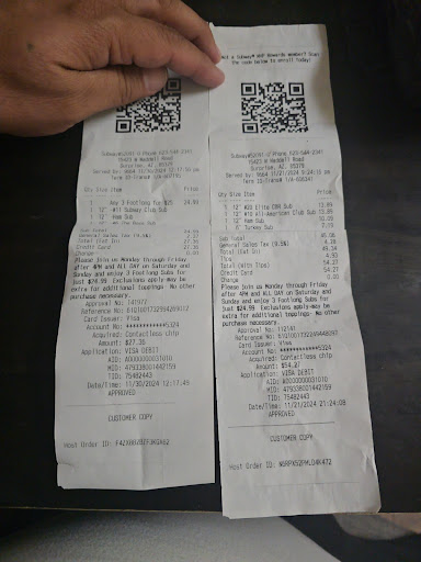 Read moreThis is not my favorite Subway I’ve ever been to. All of the staff I have encountered are all extremely rude. They seem disinterested and really just want you to leave. I get that they want to get customers in and out as fast as they can but they do not have to be so blatantly obvious about it. They are also very stingy on the veggie toppings. I ask for lettuce and they give me a minuscule handful, sloppily thrown on my sandwich. I always have to ask for more and they just give you the rudest look like ‘are you serious right now.’ If they weren’t so stingy in the first place I wouldn’t have to ask them to do their job better🤷🏻♀️ also, their veggie station is always a mess and cross-contaminated. There are olives in the lettuce, tomatoes in the pickles, etc. they need to work on their cleanliness and staff attitudes. Oh her than that, the food is good. Definitely not worth the price at $10 for a whole sandwich, so I only go when I get their “$5.99 any...