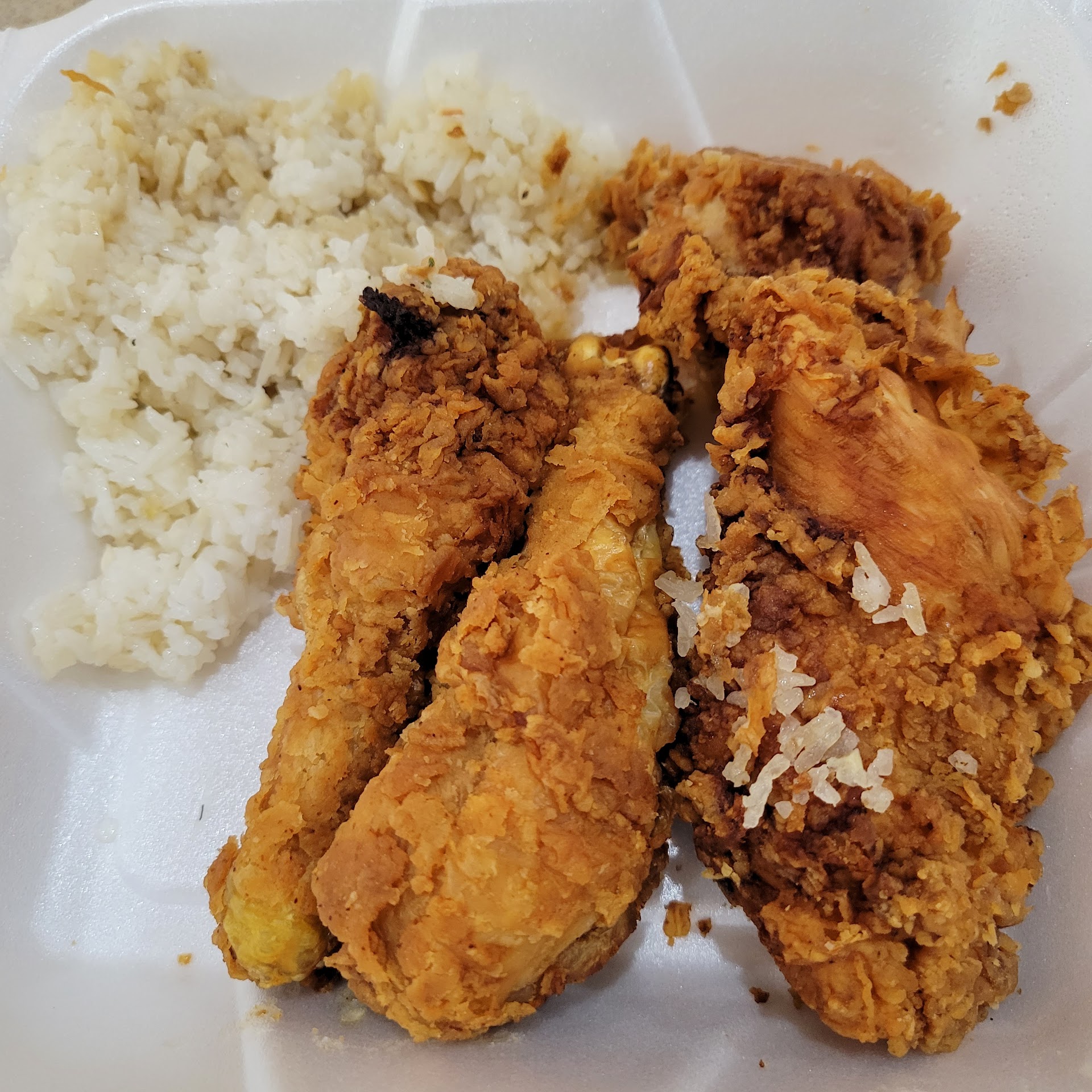Read moreI have been wanting to try this restaurant for several weeks and finally went this past Saturday The restaurant was packed, which is usually a good sign. Who would think that would be the best part of the experience? Unfortunately, it wasn't a good thing at all. Everything went downhill from there. We were the only ones not seated, but it still took the hostess 10 minutes to acknowledge us. We were then seated right away in the bar area. It took another 20 minutes to be approached by a server, then waited 10 minutes for our drinks (water). It only got worse from there. We placed our order and I got the fried chicken I had heard so much about. I was told it would take about 20 minutes to cook, which was fine, but....yes there's more. After an hour and 25 minutes, with no contact from our server our food came out one meal at a time (about 5 minute delay). I was told they were out of baked potatoes (at 7:15 in the evening) and had to choose an option that I knew I would not eat. My chicken dinner finally came out, by which time my companions dinner was cold. It was placed in front of me with absolutely no conversation. I did not receive the 1/2 chicken as stated, but rather 2 breasts and 2 legs, neither of which I normally eat.. Not the thigh and the wing which I normally eat first. No explanation, never a question if I would still want the chicken. It was placed and the server was gone. Then I tried to eat the food. The chicken was overcooked and so dry, I had to drown it in Ranch dressing (when I finally managed to flag someone down), I couldn't even identify the vegetables, they were so overcooked. I ate 2/3's of one piece of the chicken and took the rest home. We left 2 1/2 hours after we came with leftovers and empty stomachs. Definitely not worth the price we paid. The picture is my leftovers. I did not bring the vegetables home, I just left them...