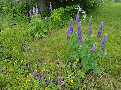 I have to agree with Kenneth's post, the one prior to this, regarding the price of a waffle cone.... I really wanted one, but $2.50 just for the cone itself ($3.50 if it's chocolate dipped) is a lot. However, looking at just their gelato, there are so many amazing-looking varieties here, so it was hard to know how to choose. In the end, I tried the Mystery Bag option and was pretty pleased - 3 Smalls for the price of one ($6).... they were all pre-packed in small containers, all put in a bag. So, I walked down the hill to Surry's beautiful (and quite peaceful, on this foggy/rainy day in June, with all the lupines in their glory) harbor, and opened up the Mystery Bag, to see what I might see and taste what I might taste. Well, the three flavors were Black Raspberry (the best - mild, fruity, smooth, delicious), Strawberry Cheesecake (pretty good, with that distinctive cheesecake taste) and Lemon (unusual, but very good - with lots of actual lemon bar chunks in it!). It made for a generous afternoon snack, and was so enticing that a harbor seal bobbed up out of the water to check out the treats. A worthwhile visit!! (sorry I didn't have any gelato pics, but these lupines were showing forth their beauty right across the street...