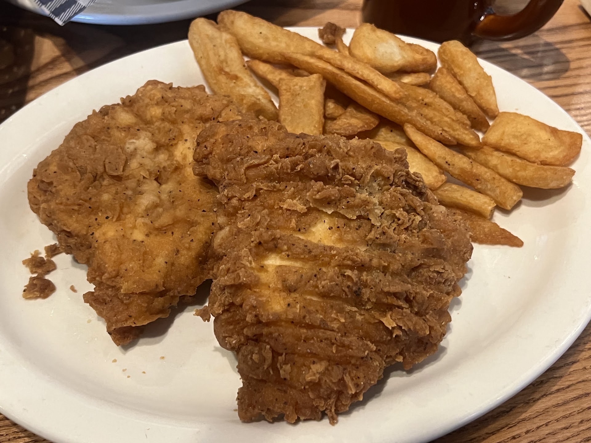Read moreI'm changing my four-star review from 5 plus years ago to now a two-star review. I used to like going here a lot. As did the family. Now whenever someone says about going here I loathe it Portions have continued to get diminutive over the years. It just doesn't seem to be what it was. I remember when this franchise first came into York Pennsylvania when I was a kid. There was a wait to get in and the portions were large. Today my wife and I stopped for a late breakfast. I would have rather gone to a local diner but she wanted pecan pancakes so we went here. It looks like the rebranding has recently occurred and they have new breakfast menus and such. That's fine. I ended up getting a mama's breakfast and she ended up getting the pecan pancakes off the sunrise special. She had a $1 upcharge for her pancakes to be made pecan which I understand. Our server asked how we wanted our eggs and we both said over light. Who doesn't love dippy eggs? Anyway my wife wanted toast. I also wanted toast but didn't ask for it. I knew there would be a charge to add toast. Now my wife got two slices of sourdough toast and when I got the bill, the add-on was almost $3 for two slices of toast. I think if you're serving eggs and you give somebody an option for how they want them and they say they want over light or dippy if you will, it should include toast. If I would have went to the local diner I prefer for breakfast their breakfast options include toast. You need toast with eggs. If I would have gotten toast that would have been another almost $3 putting us at almost six bucks just to have four slices of toast. As an aside, if you look at the receipt there is a three in parentheses beside toast. It makes me wonder if we should have gotten three slices instead of the two that I mentioned. I don't know. I'm sorry if I'm harping on this but really... Toast should be included or be a nominal amount. Not $3. Just to finish The staff was friendly and I did bring this up when I was checking out and the cashier said she was sorry but didn't say anything to anyone else. At the very least I think a manager should have been told hey this is something that the customer thinks is wrong and could be addressed. Perhaps the CEO could do something more than just change the logo and actually get toast included with breakfast. Anyway I lament the next time I have to go to a Cracker Barrel. Maybe they'll do something to change my opinion...