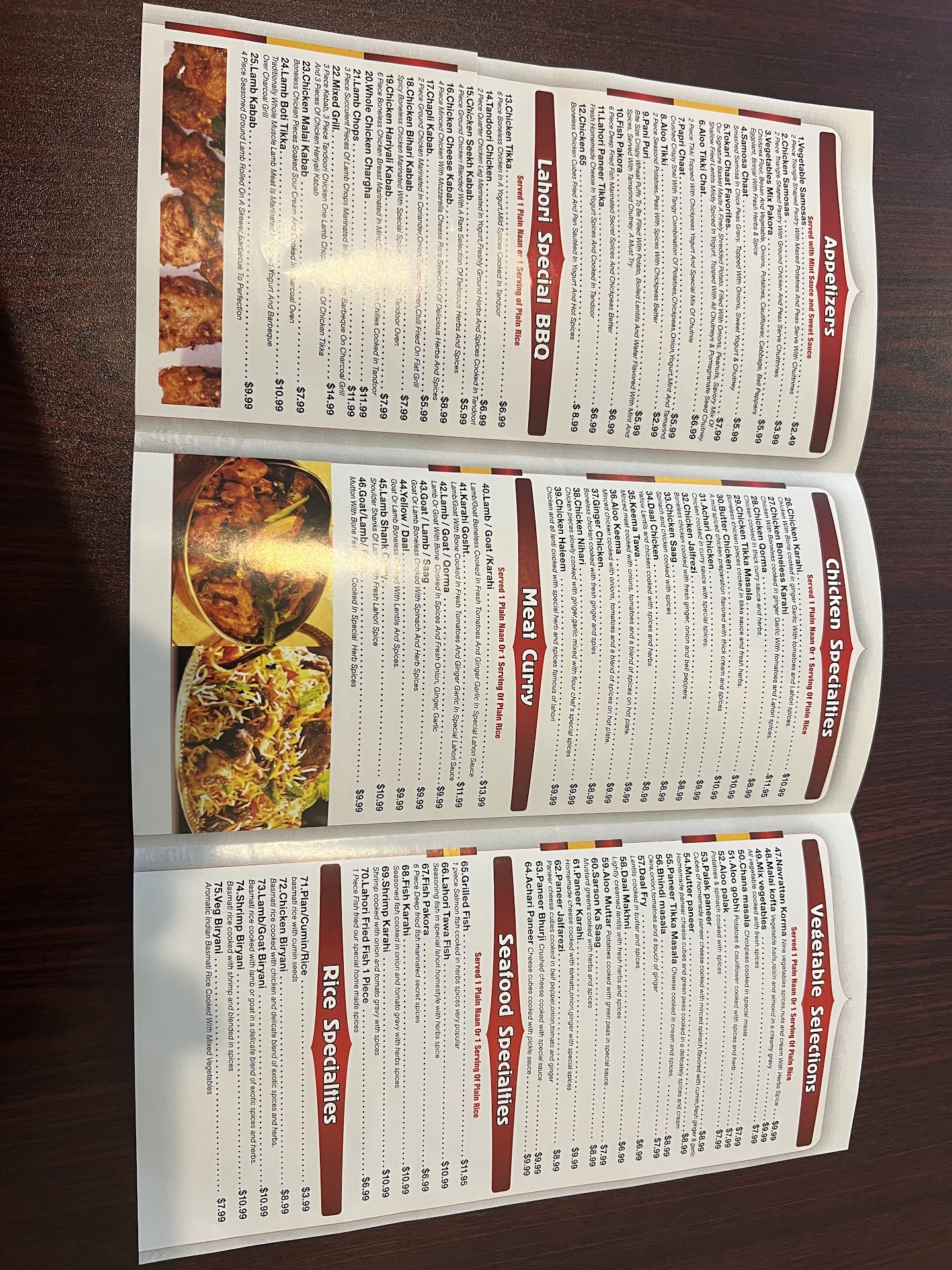 We ordered the mixed grill and lamb karahi. He asked us to pay up front, but we didn’t know how our 2 entrees came up to ~$40. According to their paper menu, mixed grill is $15 and lamb karahi is $14. When the food arrived, the mixed grill didn’t match the menu. It was all chicken items, when the menu said lamb chops. In fact, the menu said 3 pieces of tandoori chicken and 3 pieces of kabob, when they only gave us 2 pieces of each and no lamb chops. They should rename the entree to “mixed chicken grill.” We didn’t say anything about the fact that the food did not match the menu description nor the listed price. The rice wasn’t enough for the entree portion. The lamb karahi barely had meat. It was mostly bones and a lot of sauce; it came with a naan bread.