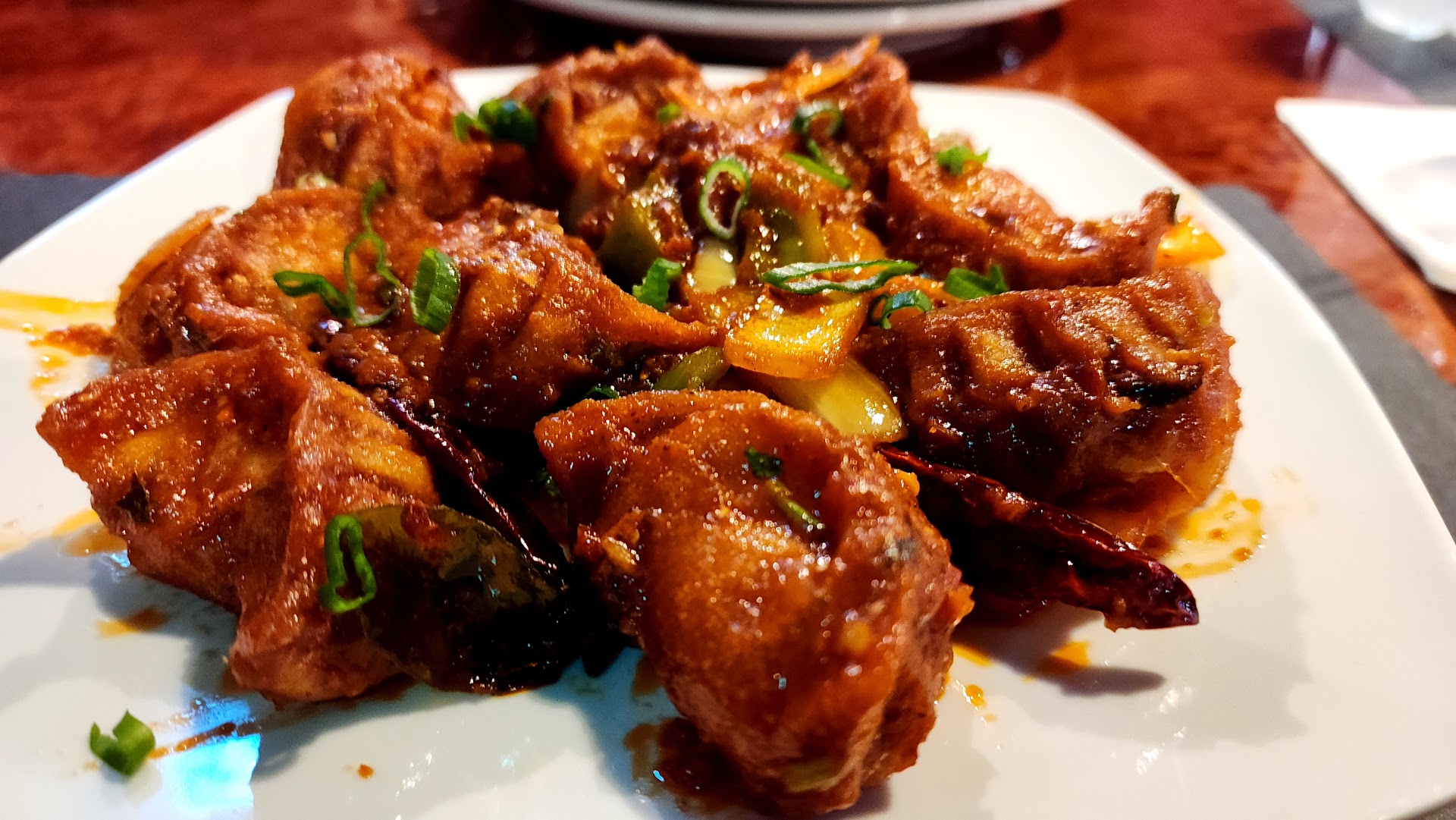 Read moreMy wife and I were out doing some shopping on a Saturday afternoon, and I previously read reviews, it seemed promising so we decided to go. We pulled in the parking lot and it was empty. First thing my wife says is "better not brides maid me" lol. If you saw the movie, you would understand. We went inside and was surprised at how nice it was. The dining room and bar was super clean looking. We were the only ones there, so the service was quick. There was a bit of a language barrier issue between us and the waitress, but it was all good. We had the veg samosa to start. Came out nice and hot. Green sauce for dipping had some heat. Other sauce that came with was sweet, so it was a nice contrast. I then had the chicken chili momo. Flavors were good, heat was pretty hot but not too hot that I couldn't finish it. Veggies still had a nice crisp to them. I liked it. The wife had the chicken curry. She did like it, but it was just a little too spicy for her. We then tried the yogurt mango drink. That was a nice relief for the pallet. Overall, it was a...