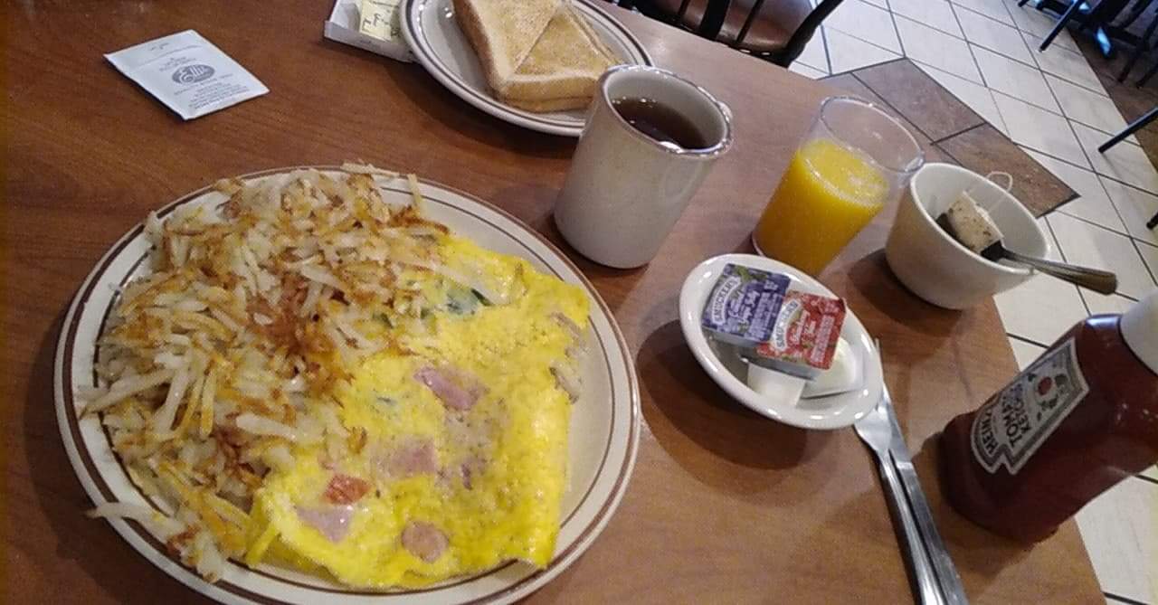 Read moreThis is a great spot to stop for breakfast or lunch. We were greeted with smiles from each of the staff and they looked like they enjoyed their job. Alexis was our waitress and she could not have been better. She was so pleasant and made sure we were satisfied with everything. And we were. The chicken sandwich with cranberry mayo was so good. My husband loved the ham omelet, and home fries. He loves all day breakfasts. The restaurant was clean, attractive, and inviting. Plenty of parking out front. Hugh selection on the menu. Very reasonable prices. Thank you Alexis. Arden took our check. He was very pleasant and we left happy and satisfied.