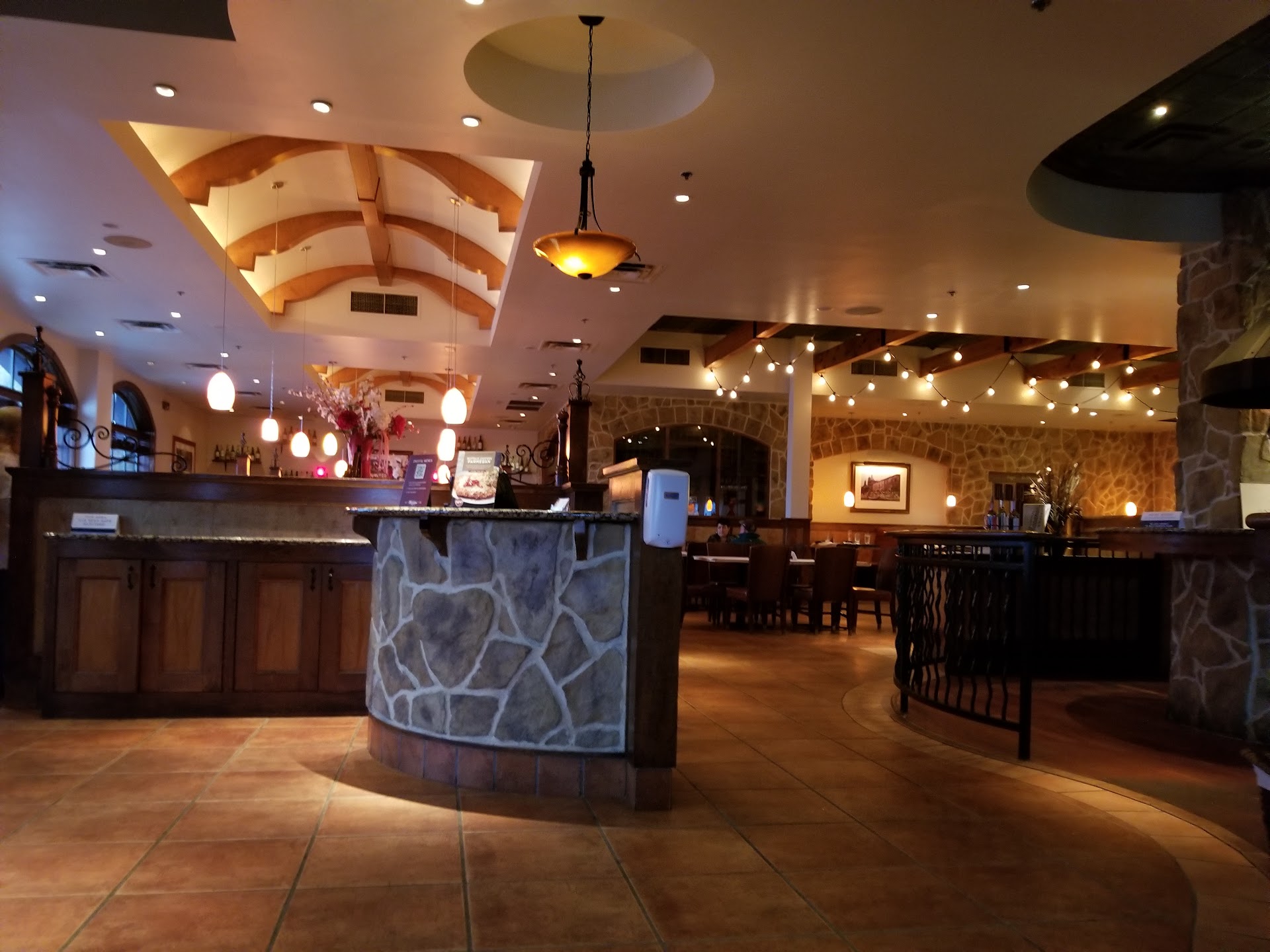 Read moreIf you come here for the garlic olive oil, please be aware that the recipe is changing to include crushed red pepper flakes. My girlfriend's entree came out wrong the first time (it included garlic olive oil, sun dried tomatoes, spinach and chicken. She ordered garlic olive oil, penne, with roasted red peppers, fresh mushrooms, and added shrimp (which is 4 shrimp for an additional $5). When they served the newly made plate, she took 1 bite and her mouth started to burn. We waited about 10 minutes or so for the waitress to check on us which she failed to do. We asked another staff member for the manager and advised that he was cooking and would be right out. He did come to the table rather quickly, but with a demeaning attitude. He didn't apologize for the first plate coming out wrong. Then told us that the new recipe for garlic olive oil includes crushed red pepper flakes and that if we didn't want them, we had to ask the wait staff not to include the pepper flakes. When the first plate came out, there were no pepper flakes in it. When she told the manager this, he said that sometimes the kitchen is inconsistent... again, he didn't offer an apology... just another excuse. I debated to give 1 star or 2... the hostess had no personality. The waitress was not very attentive as we had to flag her down whenever we needed something, and most of the staff appeared miserable. My food on the other was very good, overpriced (but what isn't right now), but very good. It was a bad experience, and set the evening up to be very disappointing. She was looking forward to this for a couple of days (we live about an hour away). You would think if you're changing the recipe to a staple menu item, it would be announced in the menu... Macaroni grill was very...
