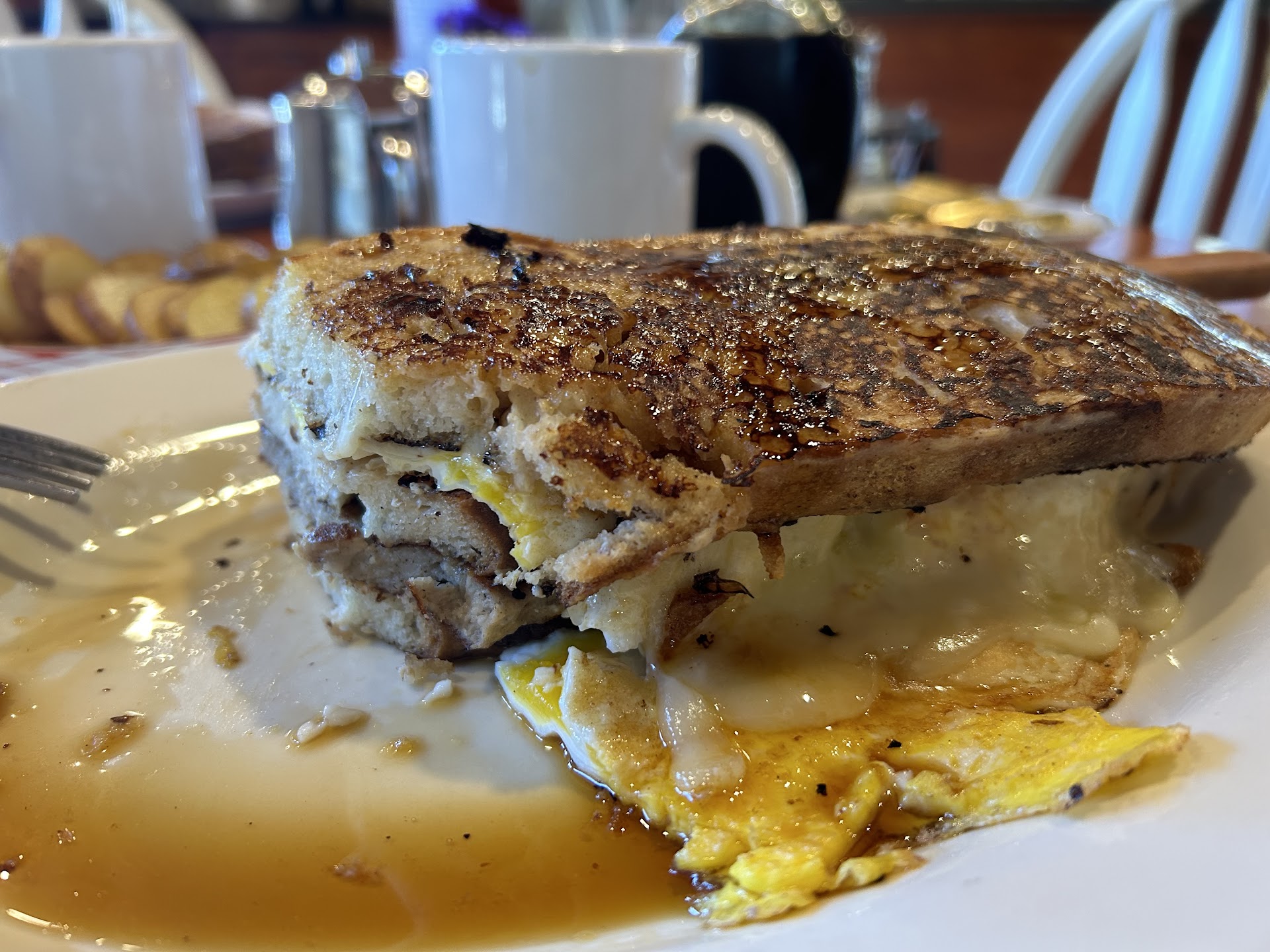 I've lived up in this area for going on 5yrs now and am so happy to see theyâre opened again, as they are a 5 minute walk from my place. Tried them first the first time today and tho my expectations are always high, they did not fail to impress. Cup of coffee was immediately addressed as soon as I sat down, which is always nice-not having to wait. Coffee could be a bit better as I drink mine black, no sugar. Went nicely with the food, but normally I have 2 cups, but settled for just one. Waitress was very friendly without being overbearing. I was given ample time to read menu and make my decision. My order came out in the perfect amount of time and it was delicious I ordered an American cheese omelette with side of bacon and home fries (hf come with the omelette). No toast for me. Home fries were nicely done; crispy on the outside and tender and creamy inside. The omelette had just a wee bit too much cheese, but the omelette was light and fluffy and very near perfect. Bacon was cooked just right. The restaurant itself was warm and welcoming, with some historical accents, in the form of some antiques placed nicely throughout. Very clean with tables arranged and spaced well so as not to feel crowded. There are some seats in the window facing out with a nice wooden counter. Stepping up to pay, I noticed a lot of attractive desserts in the bright, clear glass case, so I purchased a blueberry turnover to go. Tho I don't know if they do much, if any baking on premises, it was fresh and scrumptious. I look forward to my next visit, as there are more items I wish to...