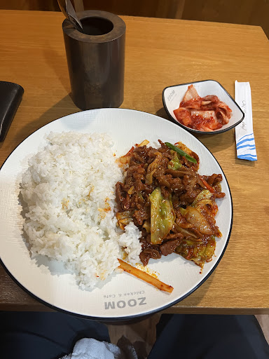 Zoom is great. Its ambience is solid with its throwback of a background music playlist, so-so customer experience admittedly, but most especially, the food with justifiable prices. The spicy bulgogi was great, but the spotlight goes to the amazing chicken. Both chicken that Iโve ordered are not too overpowering in their sauces so that the texture is still crispy, while the sauce itself still does its job effectively. Itโs that perfect middle ground. I definitely recommend any type of chicken.