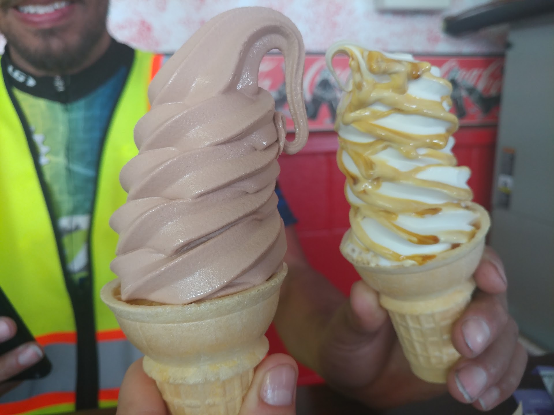 Read moreStarted with tasty sweet ice cream cones: one chocolate & one vanilla peanut butter swirl. Ordered a fish sandwich with all the toppings and a delux cheeseburger with onions. Fries were hot, crunchy, and fresh. Great place to cool off or fill up. Clean environment and very...