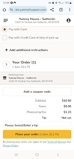 I stopped by the Yummy House and was quickly greeted and seated by the very friendly waitress. The location had ample seating and was not busy, but the town itself did not appear to be a busy metropolis.