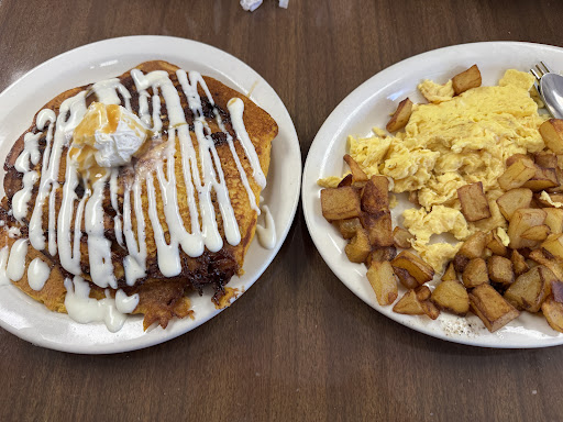 Read moreWe were told by one staff member to pick a seat , well the server didn’t see us so we were just chillin for a while … I got crepes and they put so much cream cheese in it was gross , that and they use frozen fruit which causes the food to get cold and the strawberries were so runny my plate was 50% frozen strawberry juice . I also asked for very light cheese on my eggs and my gf made fun of me for over explaining how most people put too much on and they still put too much on . Gf got French toast which was cold bc the frozen strawberries …. I’d happily pay a few more $ to get fresh fruit . Oh and we each got one napkin to start so I had to keep asking for them for all that...
