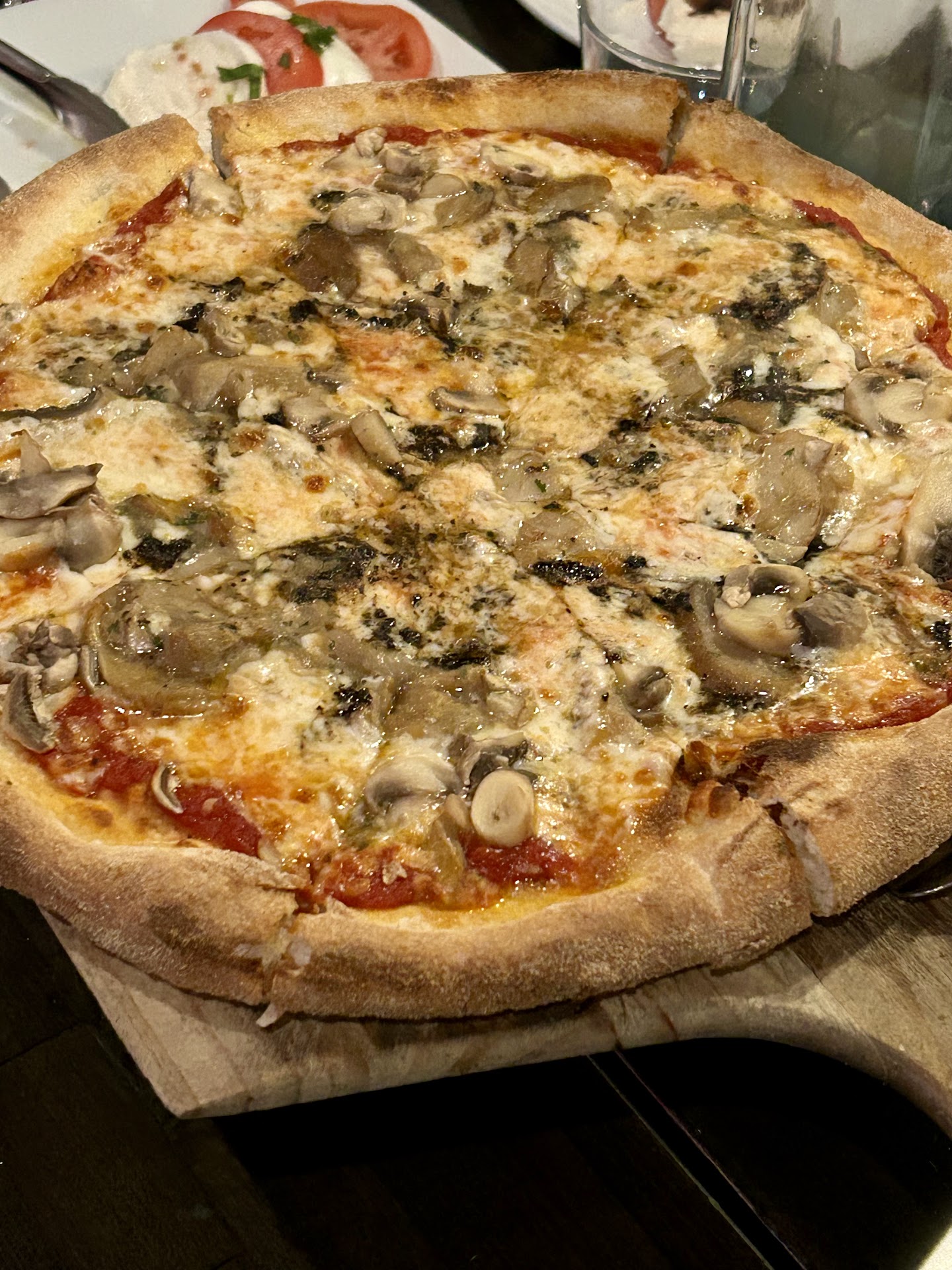 We had a mushroom and truffle pizza, a cooked ham and mushroom pizza, and several panini. All were delicious. They have a large selection of interesting pizzas, including many sauceless pizzas. I had the Trento and thought it was terrific. We also ordered a meat and cheese sampler plate and the cheeses were hands-down the best Italian cheeses Iāve encountered in a pizzeria and much better than what is offered at most more expensive restaurants. The meats were very good, too. The pizzas and panini were prepared very quickly. We also ordered a caprese salad, which was a generous portion. Delicious focaccia was served for the whole table.