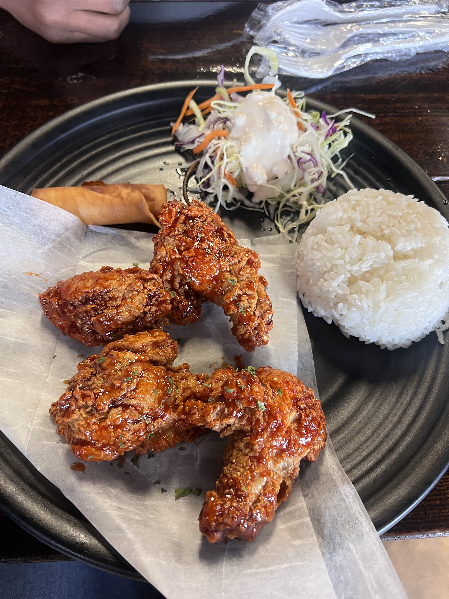 Read moreI ordered spicy buffalo wings for my son, garlic soy tikkudak wings for myself, and garlic spicy drumsticks for my SO. Even though I told them repeatedly that I wanted spicy wings, they gave me naked wings which I had to dress when I got home. We ordered 2 sides of rice which was dry but whatever. The mozzarella sticks had no marinate on the side. Annoying but not as horrible. Things happen. The garlic spicy chicken has a nice kick to them. Absolutely delicious.
