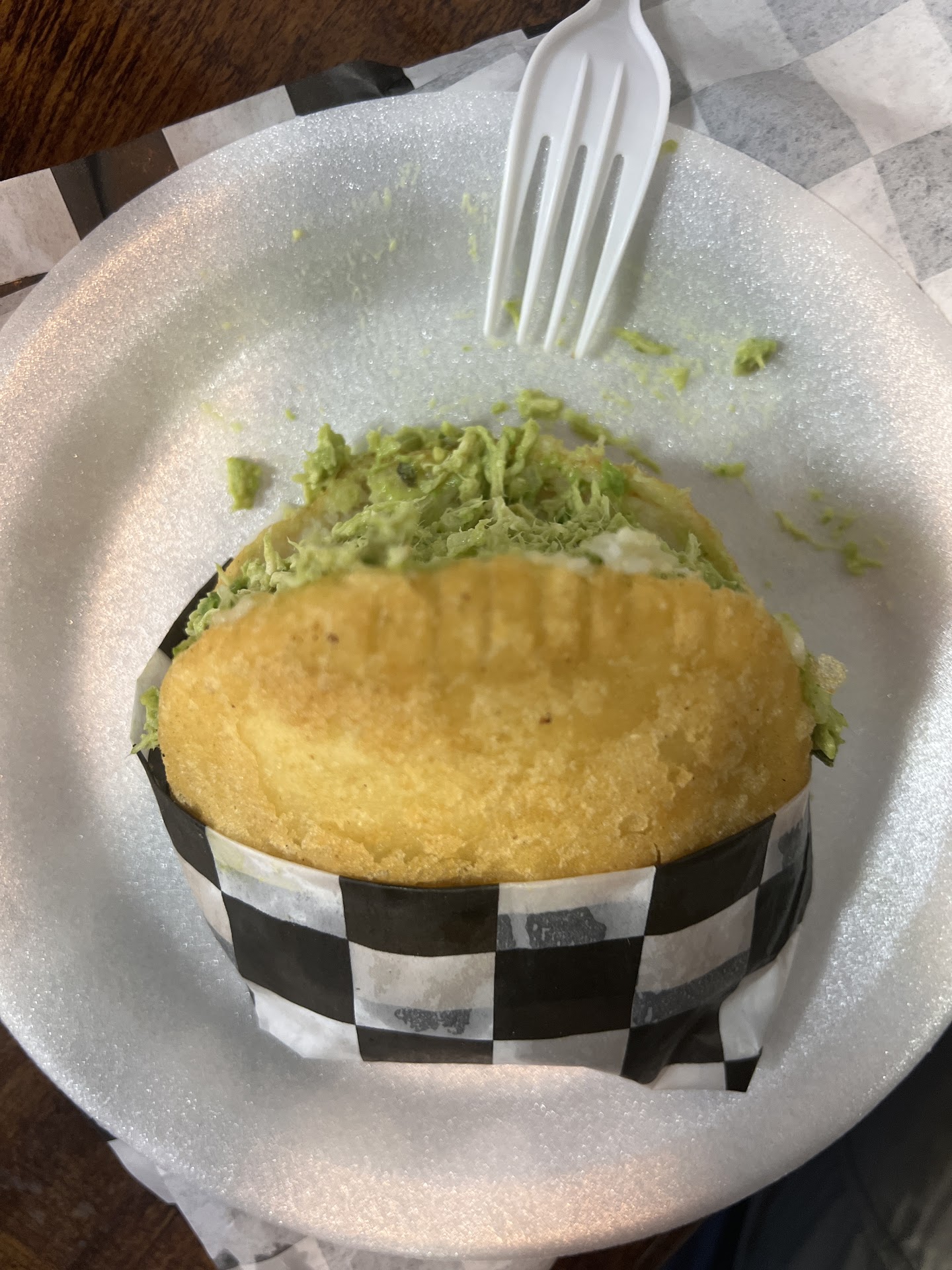 I Ordered the Pelua Arepa Which is an Arepa with Shredded beef, Gouda cheese it’s offer extra fried or baked and I went with fried . I also ordered a frozen Mango Juice The shredded beef for the Arepa was so flavorful and tasty. The right amount of cheese and a warm and fresh tasting Arepa . I wish they offered the seasoned sauce that they the beef is made in to go or I should have asked ask if they can add more of the sauce to soak the meet just a little bit more because the beef was a bit dry to my liking at the start but still very very yummy & flavorful . Next time I will prob order a green sauce or something . The mango juice was perfect is not too sweet and very good .