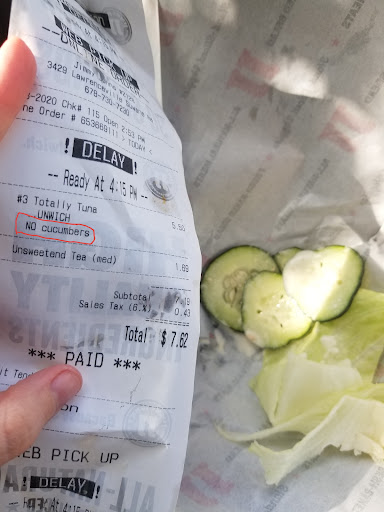 But, my daughter had a fit that the sandwich had lettuce and tomatoes 'residue' that I couldn't dig out.