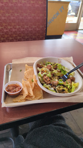 Ā Ā Ā Read moreMy family went to Moeās on may 18th 6.30pm We were greeted by a menu with cute names for the dishes. (That was the high point of the meal.) I ordered an overachieverās combo. With this I received two tacos and some chips (many broken ā Iām guessing from the bottom of the bag ā I was under the impression something more came with the meal but the beans were going to be put on taco so I really do not know if I received the whole combo or not). My son ordered fajitaās next, he was greeted with a lump of taco meat. (This was indeed a stroke of luck for him, since he left and went next door for Chinese ā he had a very good meal.) Not so lucky for my husband since he took the fajitas or ground taco meat. The final order was another overachiever combo. So for just under $30 we received 4 tacos, three drinks, broken chips, a lump of meat with three tortillas and a reprimand from the cashier (my son said she gave me very dirty looks when I asked for salsa to go with the chips and which size cup I was suppose to take for the drinks.) Then we went to set down. The floor had trash a variety of broken chips on it. Iām really not sure how this place is doing business, for about the same price we could have gone to Don Pabloās. Although the concept of Moeās seems good, the reality is that it the equivalent of a low end but more expensive Taco Bell. The food did taste okay ā we ate it ā just left you wanting something so we did enjoy Tums for dessert. We will...