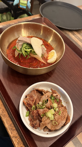 A few tips, they don't have barley tea but they have like a beef broth ginger soup that goes great as a drink and compliments the naengmyun well and is a great dish to go with spicy dishes. My friend got the bibim naengmyun and L.A. Kalbi combo and said it was not too spicy and that it was also good. I look forward to trying that in a future visit.