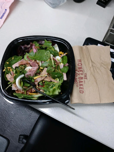!!BEWARE!! The company I work for ordered food for us. They allowed us to pick from the menu what we wanted. I ordered a FULL size Cobb salad. This salad is $8.79, it comes with ham, 1 egg, cheese, roasted tomato, pickled red onions and cornbread croutons on top of a blend of green leaf spring lettuce. Look at this picture...I havent taken a bite. Look at the napkin beside it. This is supposedly the $8.79 FULL salad. AWFUL!!! PITIFUL! Pat or Chris....the delivery lady who actually is the manager delivered all the meals to us. She got extremely upset with the fact that I and the food coordinator asked about how skimpy the salads were. The coordinator even compared this salad to ones form Chick Fil a as them being more full and cost almost two dollars less. Pat/Chris response was that the toppings weighed down the lettuce.......Ma'am get out of here....this is AWFUL and you should be ashamed trying to make excuses for this pitiful almost $9 salad! We (as a company, per the coordinator wont give them a 3rd try) HORRIBLE! This should be considered a side salad NOT a...