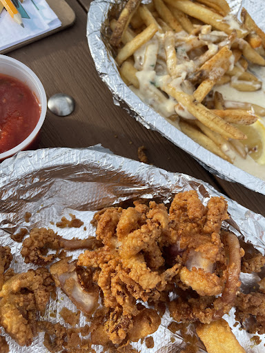 Read moreWe called ahead to have a drink and appetizer while we were placing our order, usually it is a 30 minute or so wait. There was no wait so we brought our pup and hung out in the back deck area. We had a bowl of water with ice cubes brought out for us a few Coke and Rum doubles the crab cheese fries (which omg, they were a cheese fry connoisseurs dream!) the calamari which came with octopusesses as well, which was an awesome surprise! Marinara was enjoyable as they also are affiliated with the Italian restaurant across the street and back west just a bit.