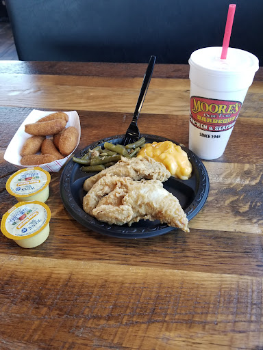 Read moreI'm a BBQ Junkie, and a local to eastern NC. I like BBQ, and I like this Moores, it's a great resturant with good food, but if you've ever been to a Smithfields, this is basically a carbon copy of thier bbq, which isnt bad dont get me wrong. It just doesnt do justice to real East NC BBQ. I do think it's a little better here because they have a sweeter, finer slaw. But they're fries are the same and their decor is the same etc etc. They do have a more expansive menu tho, they have shrimp, fish, Bone in Chicken, chicken sandwhich, crab cakes, fish, some days they have ribs, plenty of sides etc etc. I grew up going to the old family owned Moores in New Bern. These new restaurants seem more commercialized. But they're always nice, and they're very clean. And it seems to be doing well for them because they're opening up new locations left and right. And everything I've had has been tasty. They also have specials and a text club which sends you coupons and deals. Youll enjoy what you order here. I will say if you're looking for real East NC BBQ take a little drive to Sam Jones BBQ. But If you dont feel like the drive this place will fill the void. If your not into BBQ, then They're chicken and shrimp Burger and pretty nice. Shrimp Brurger combo is $9 with fries and a drink. BBQ Sandwhich Combo is $8. Kids Meals are $5. Combo Plates are around $10 or more. Prices are decent....