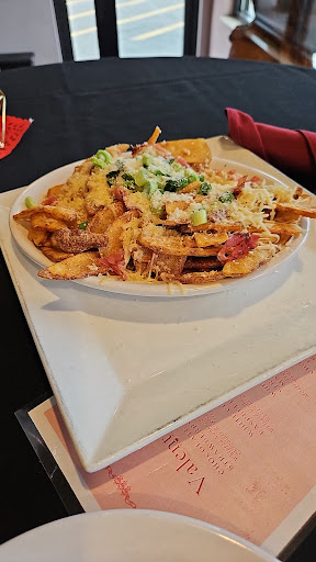 Read moreWent for dinner the other night with my girlfriend and her parents. I wouldnât say the place was super busy but there was a decent crowd of roughly 8-9 tables. It seemed like it wouldâve been fairly easy for the number of servers that were on duty. Straight from the jump, we had a fairly lengthy wait just to get our drink/appetizer orders in. We ordered a couple of calzones, chicken Alfredo, and loaded fries. The entrees came with a side, with one of the salads being a âpremiumâ side. For my calzone, I asked for no olives. Despite this request, I would describe the filling as having an ABUNDANCE of olives. A couple of us ordered Mac-and-cheese as the side and it was extremely underwhelming. Basically bow tie pasta that was buttered with a very light sprinkle of what maybe was shredded cheese.