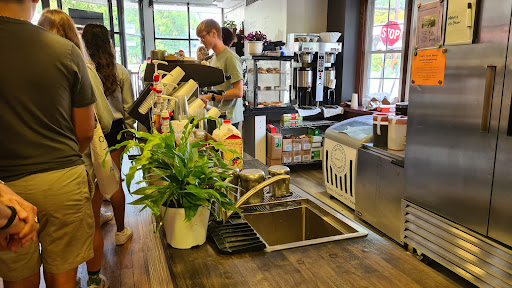 Read moreThe coffee was bland in flavor and seemed watered down. They only have bagel based sandwiches I believe and a few scones/coffee cakes. The atmosphere, a lot of people sitting around with books and laptops. It doesnt seem pedestrian friendly for someone just wanting a bite and drink. Speaking of which, i was there round lunchtime and the cashier was nice enough, but let the customer in front of me talk for over AFTER ordering. Not cool for those with places to see, things to do. It had a real sesame street vibe to it, as if they let a bunch of kids play "worker" for fun. I gave it a token star for the "take out" option, and most locals wouldnt recognize good coffee if they...