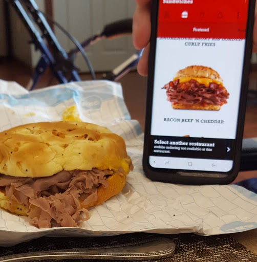 Look at the photo in my review. I ordered a Bacon Beef & Cheddar sandwich. Look at what it is purported to look like on the phone and then look at what I'm getting ready to eat. Where's all that delicious roast beef?? And most importantly, WHERE'S THE BACON????