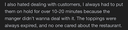 This Pizza Hut location should just close down! Very upset with the customer service and quality of pizza. I’m from the Eastern Shore of Maryland and we don’t have a Pizza Hut super close, so we were so excited to try it. Sad we even wasted our time with it. The crust was some weird no flavoring pale colored crust. Literally no taste, not pan tossed either. Cold basically. It wasn’t cut properly so he sliced ripped trying to take apart.