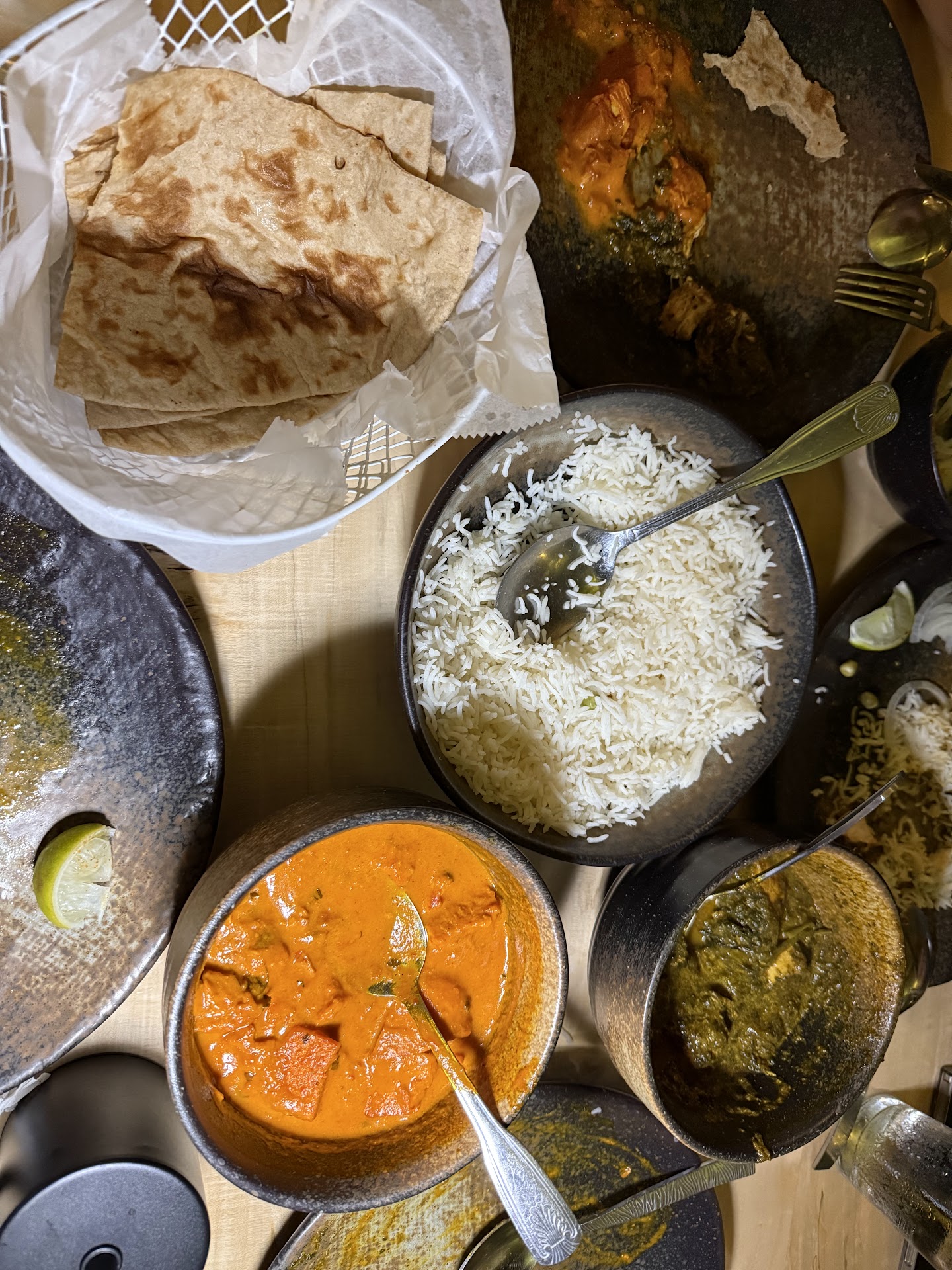 Read moreSo here's my review. We dined here tonight based on the 4.5 star reviews on Google. From the start i could tell it was going to be off a little. We arrived at 6:15 without a reservation. Place is really nice inside. Nice atmosphere. Was asked if we had a reservation which we said no. The waiter said let me see what I can do. Most of these tables are reserved. He came back and said as long as you are done be 8pm. He said all the tables are booked for 8pm.Which was kind of odd since it was only 6:15. Which we said was fine. Was seated and given menus. We ordered 2 chi teas, And a mango smoothie . Our 2 chi teas came out. Our food runner while placing them on the table spilled the tea. Over the menu, my phone and my glasses. She said she was sorry, which was no problem. She wiped up the spill. The top of the menu and left. Waiter came back to take our order.We ordered a sampler app and the Masala chicken wings. When the food runner brought the apps out(same girl that spilled the tea) she dropped some of the sampler on the floor. We all watched it fall on the floor. She noticed it as well. But said nothing. I guess she was still embarrassed by the tea. That food stayed on the floor the entire time we were there. So my chicken wings were ok. These are not fresh. But frozen. You can tell. The sampler app was really bad. Over fried frozen food. We finished the wings. The sauce for them was ok. When the waiter came back to collect the plates didn't ask if there was an issue with the one plate with 85% of the food still on it. And 5% still laying on the floor. Next come the entrees . We had the chicken vindaloo. And the dal makhani. Asked if we wanted mild, medium or spicy. We chose medium. When they came out the presentation was nice. Looked good. But the food was bland. I mean very bland. No spice, no heat. Not much flavor at all. Rice was good. Naan was ok. But tasted like yesterday's that was reheated. Ok now on to the star of the night. My sons chicken nuggets and fries. The fries were outstanding. Nice crisp and seasoned well. The nuggets were fried nice and he was happy as hell with his meal. He gave it 5 stars. But he never got his mango smoothie he ordered. Waiter took it off the bill. Service was extremely slow. We were worried if we be done by 8. Waiter came by and asked if we wanted dessert, which we declined. Also asked if we would like boxes to take home food. Which we also declined. Probably 75% of the food we ordered on the table and saying no to boxes you think if they ask if there was a problem with the food. Nope. We paid the bill and left at 7:57. The place was empty. One other table and they left right behind us. There are so many better choices then this place. I really don't leave bad reviews. You can check my past reviews of other places but this one is a hard pass for me. So many others better...